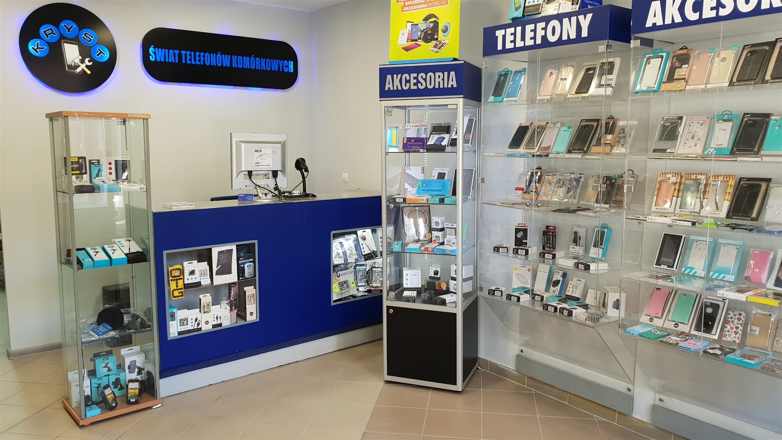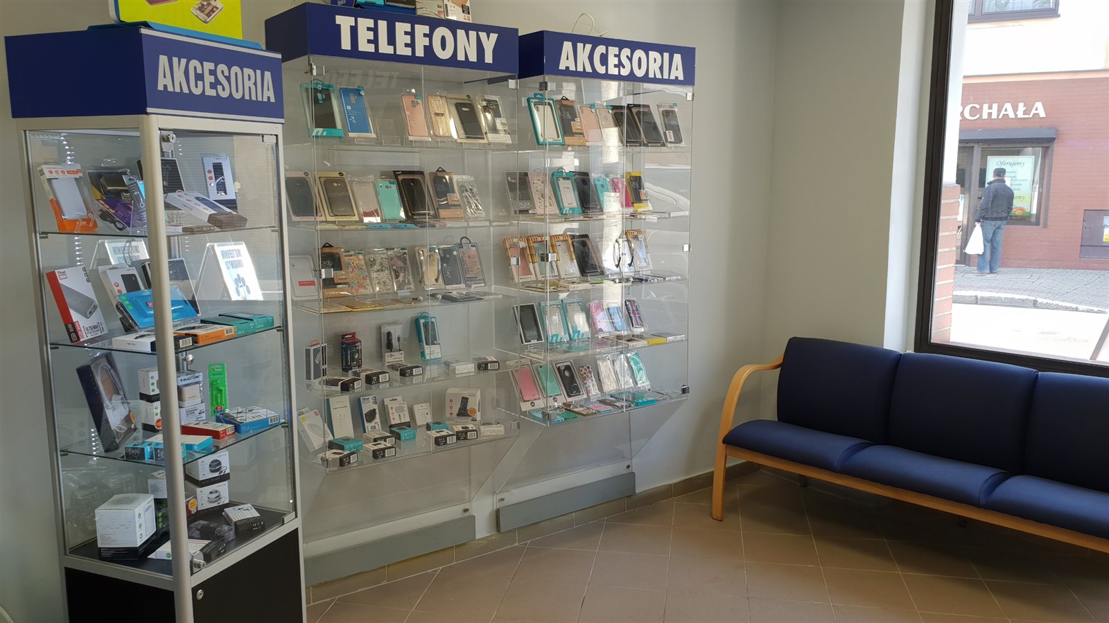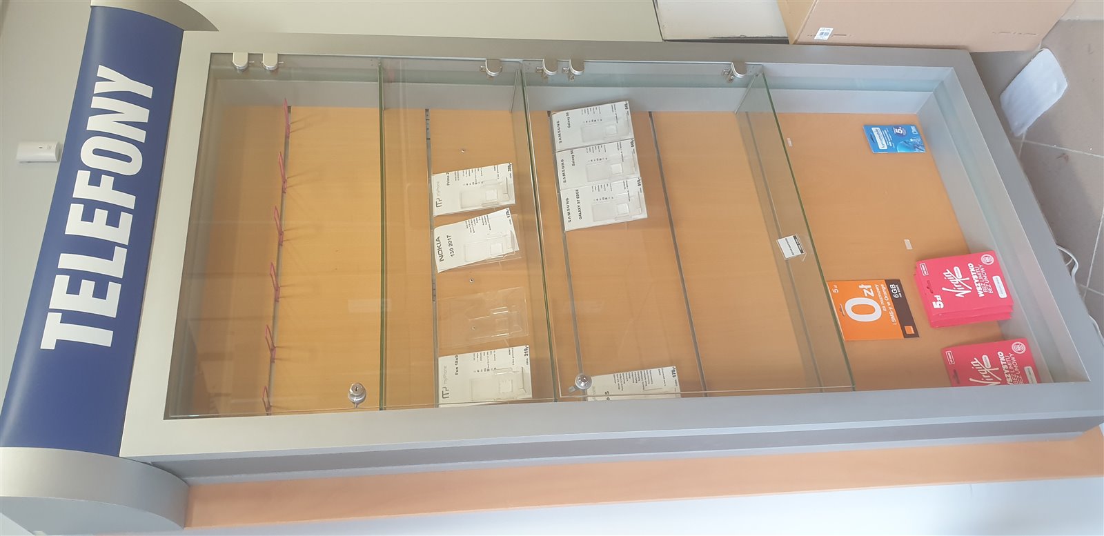 Wyposażenie - lada, gabloty, krzesła, kasetony - Świat-telefonii