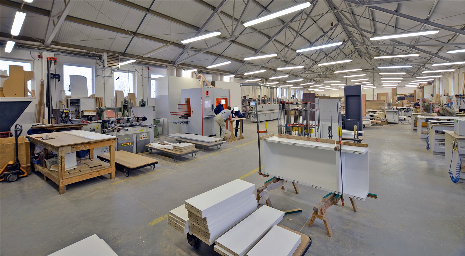 Wyposażenie: nowoczesne maszyny niezbędne do produkcji mebli.
