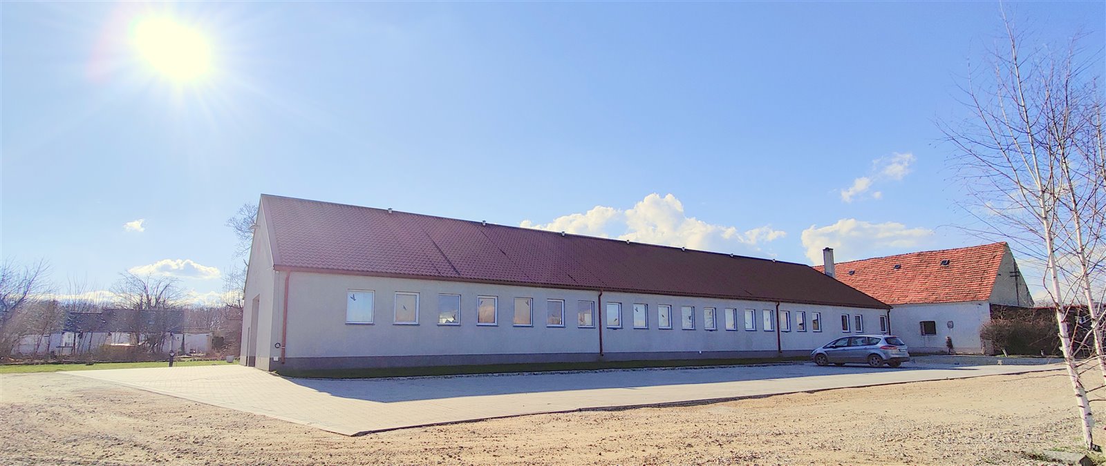 - Budynek 2 - hala 447m2 magazynowo-biurowa, murowana z przestronnym poddaszem możliwym do adaptacji.