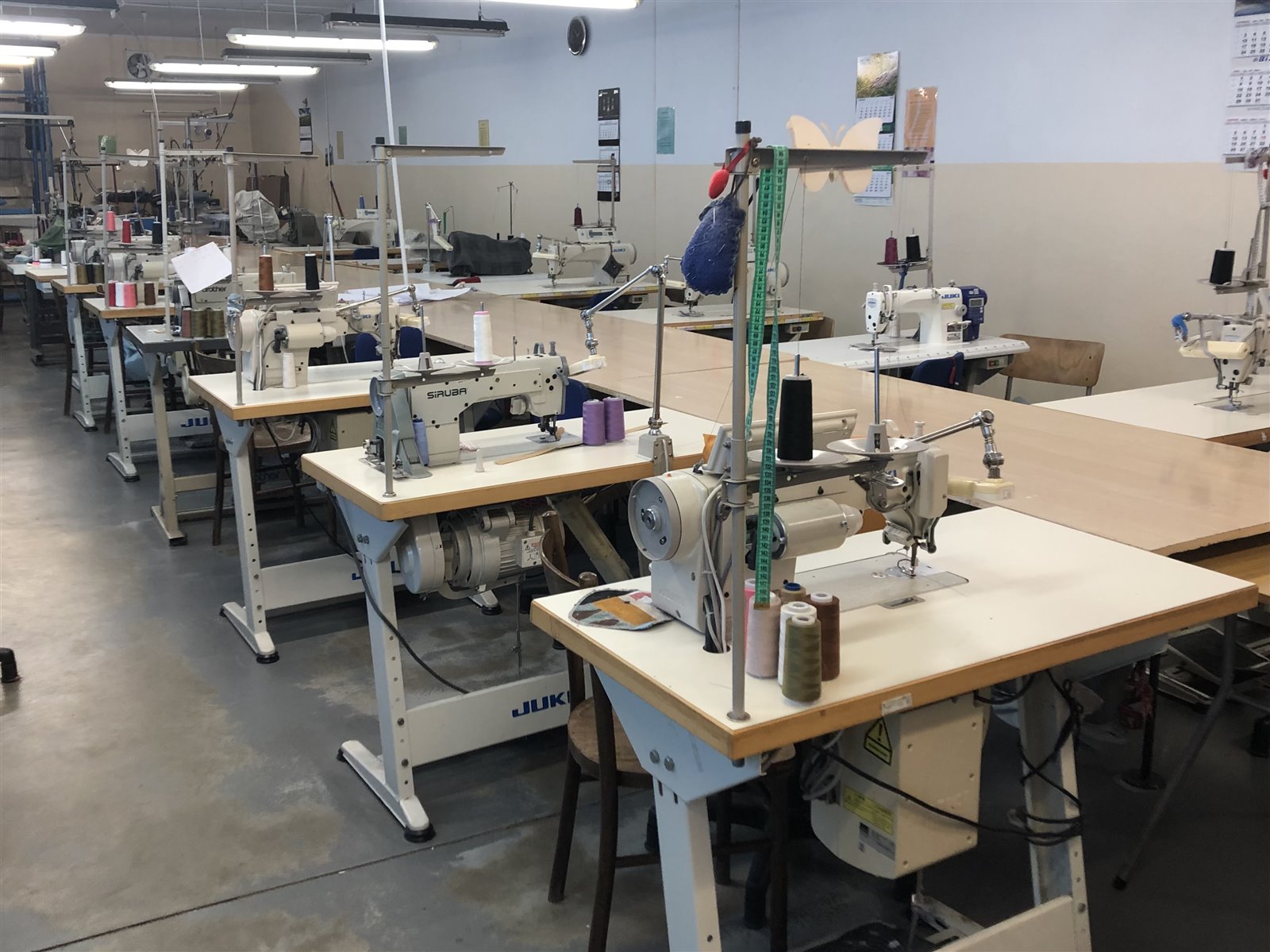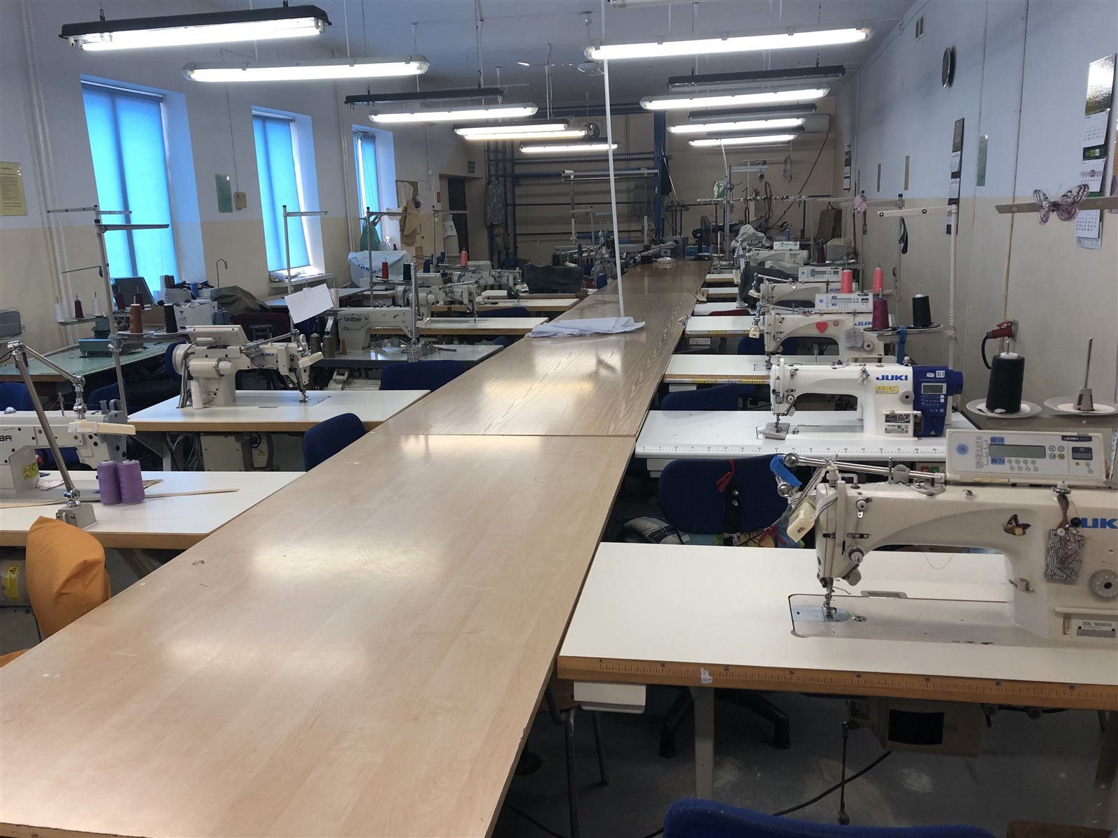 - Maszyny specjalistyczne: stębnówka Juki do grubych tkanin, renderówka, mereżka, maszyna dwuigłowa Juki, mikrozygzak, zygzakówka, rękawówka