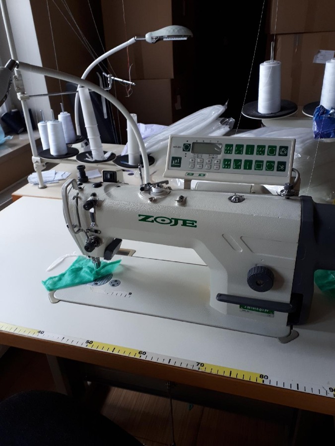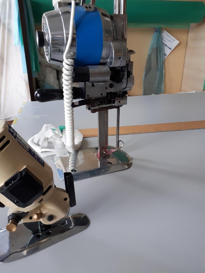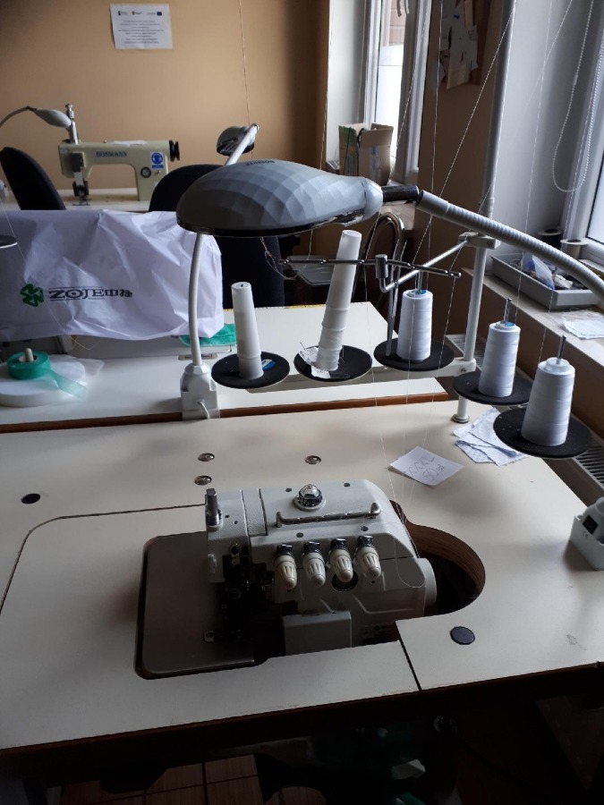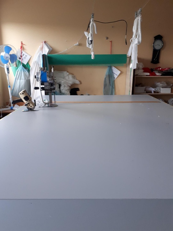Urządzenia: maszyna ultradźwiękowa, noże krojcze, stół krojczy, dwie maszyny krawieckie, stojak do włókniny.