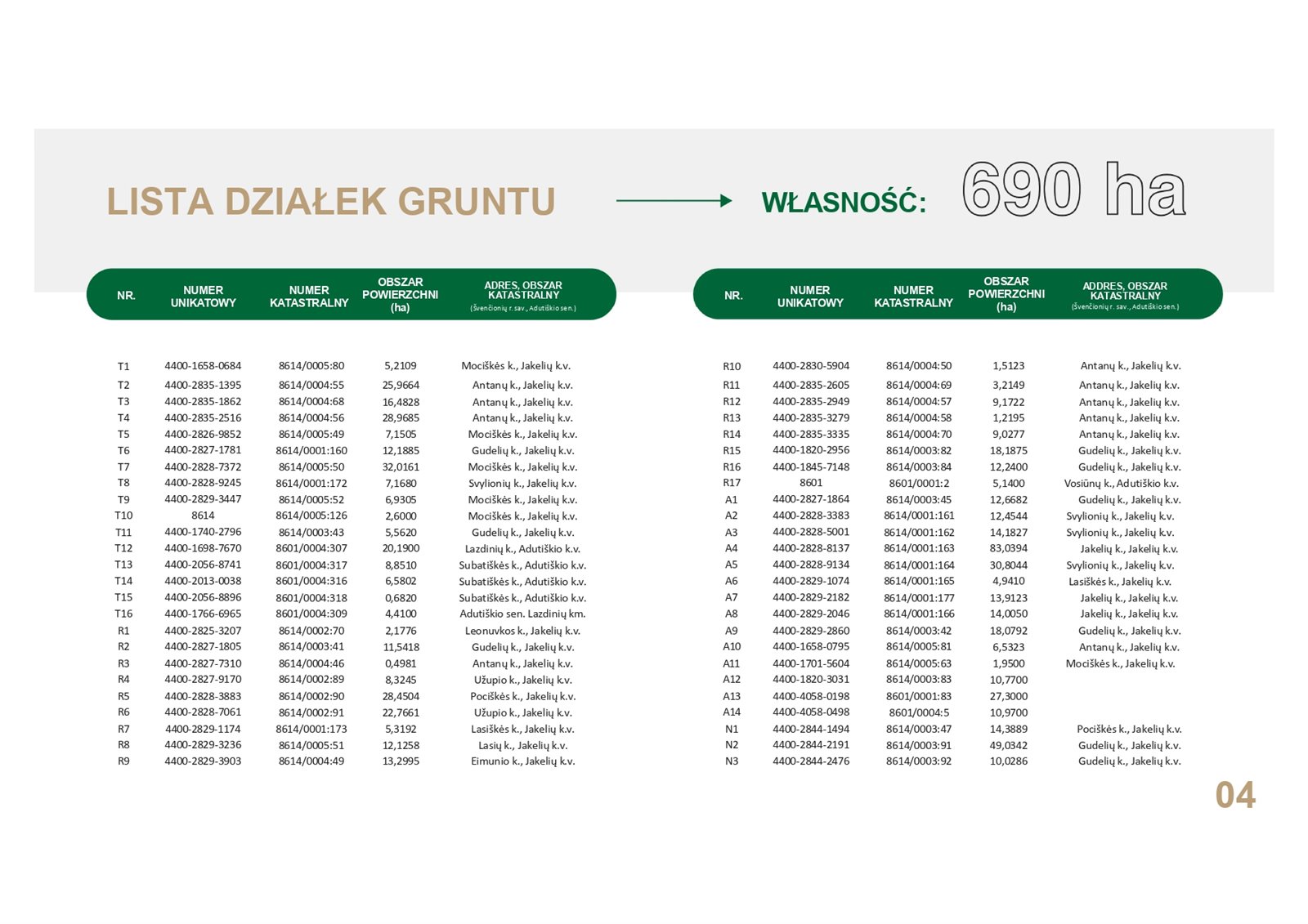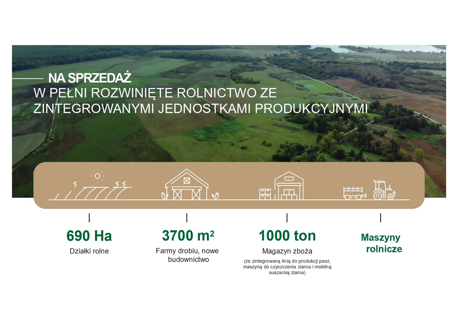 Całość gospodarstwa składa się z 690 hektarów gruntów rolnych z prawem własności 2 700 000 €