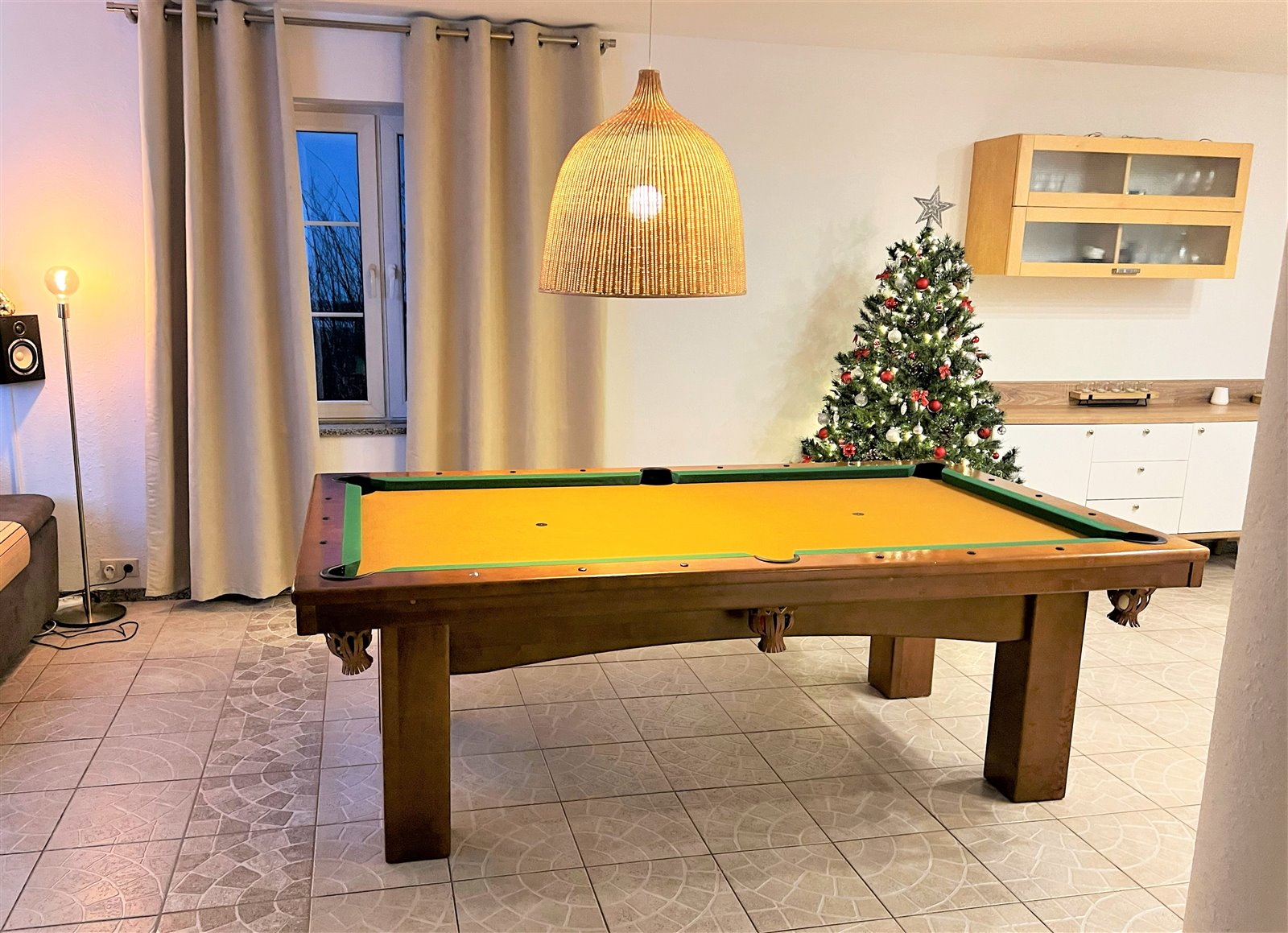 - kominek i stół bilardowy