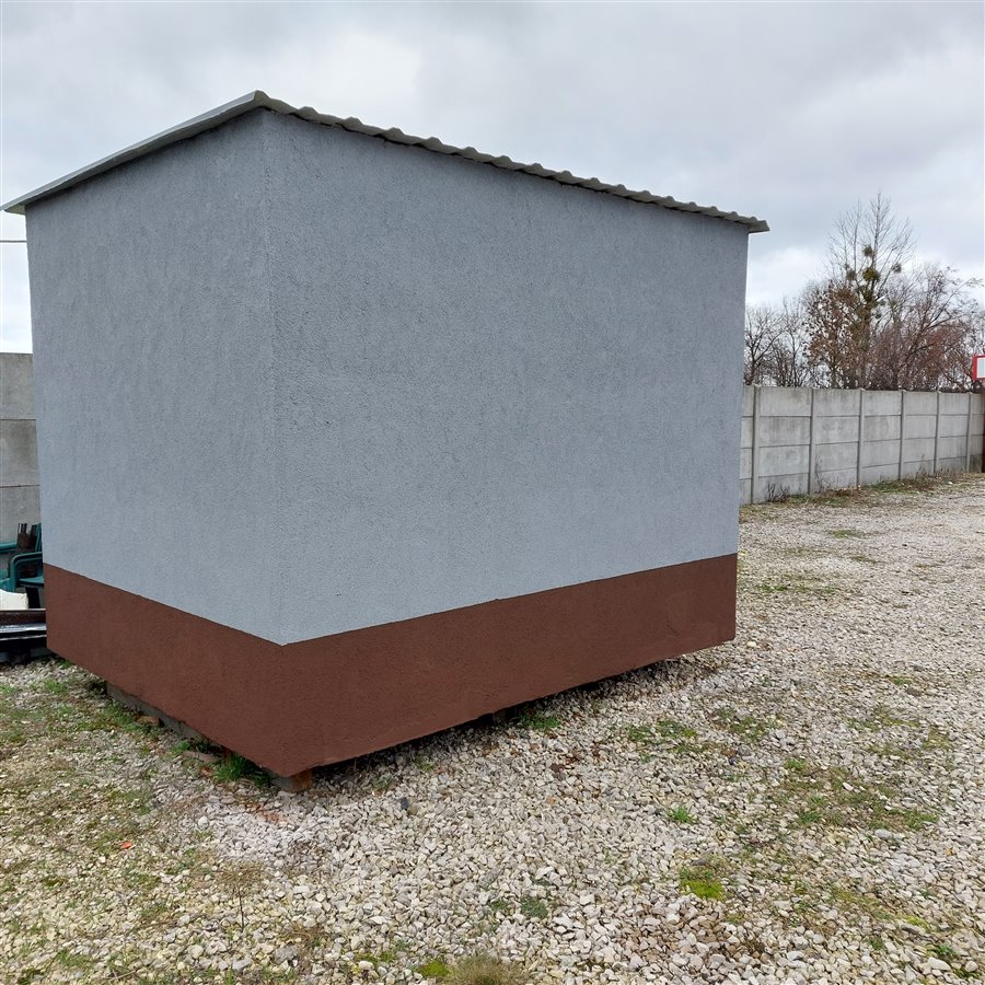 Budka jest wykonana z profilu metalowego w środku styropian 6cm na zewnątrz struktura na podłodze płyta styropian 6cm, płyta MDF i gumoleum. Dach tez ocieplony styropianem 6cm i nowa blacha ryflowana.