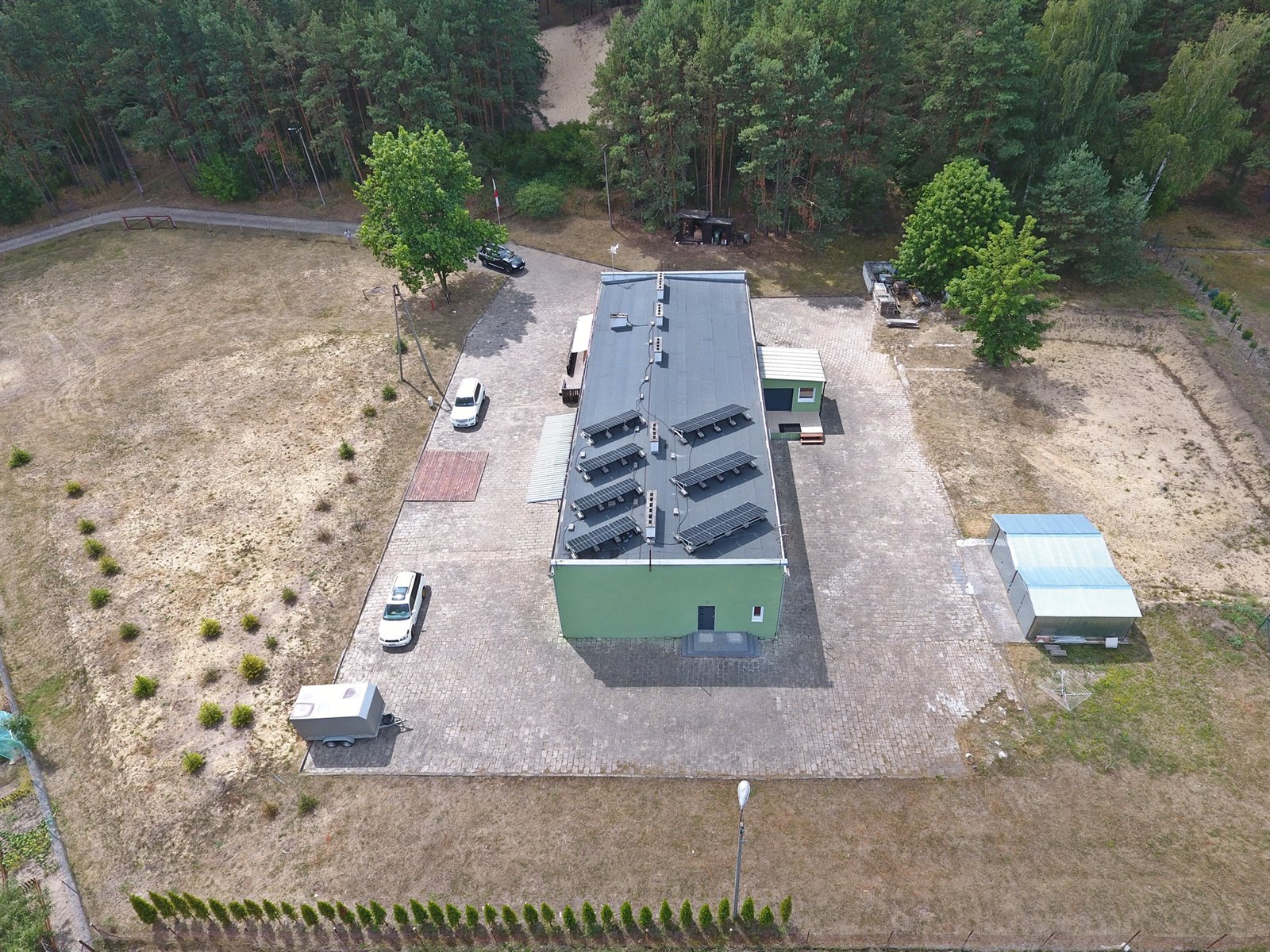 Prąd: nowa instalacja elektryczna, panele fotowoltaiczne o mocy 10 kW(możliwość zwiększenia mocy), wyprowadzono także instalację pod monitoring