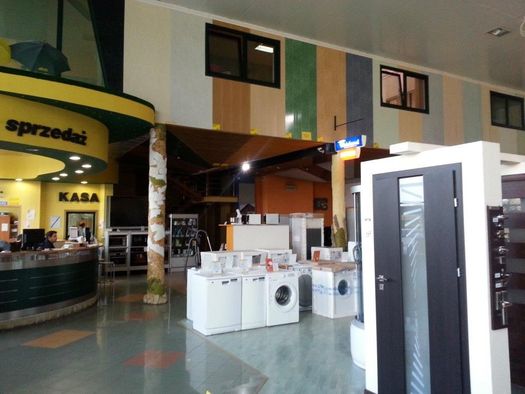 1. Salon wystawowy - 550 m2, wysoki 5m, przeszklony nowoczesny, automatyczne drzwi, płytka ceramiczna, częściowo klimatyzacja, co, wentylacja, monitoring, kurtyna, powietrzna przy wejściu głównym, ogrzewanie podłogowe - jest możliwość dobudowania antresoli !
