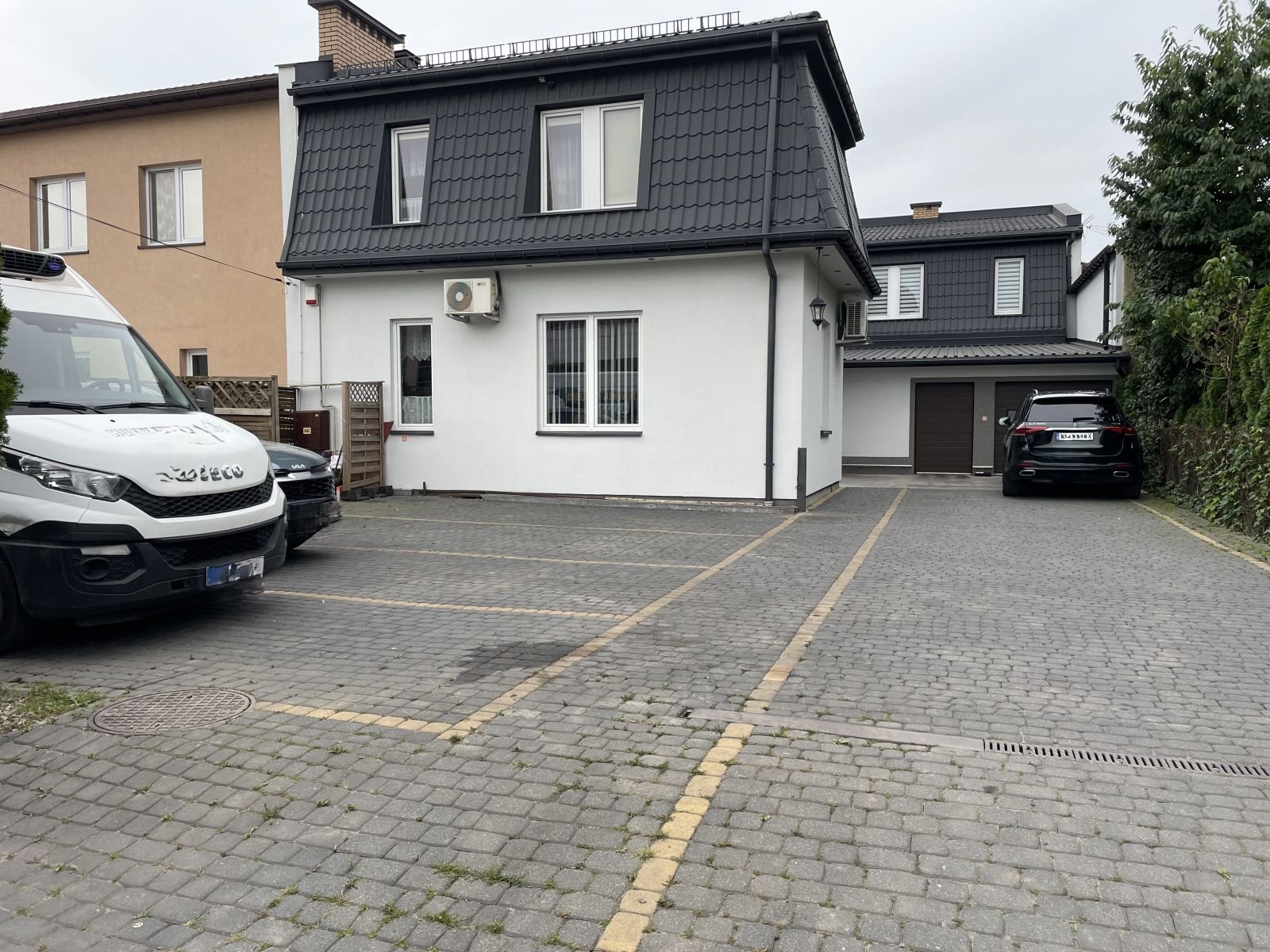 • Plac parkingowy na terenie nieruchomości z miejscami dla 4–7 samochodów typu bus/średni ciężarowy.
