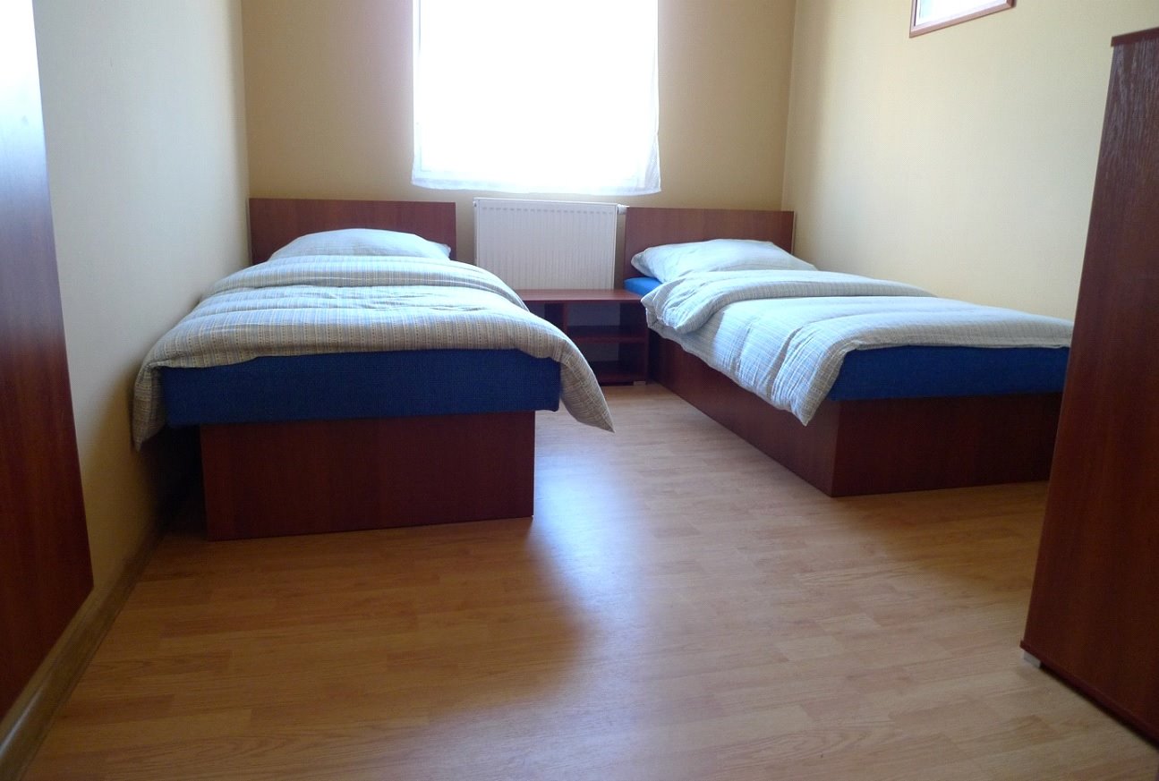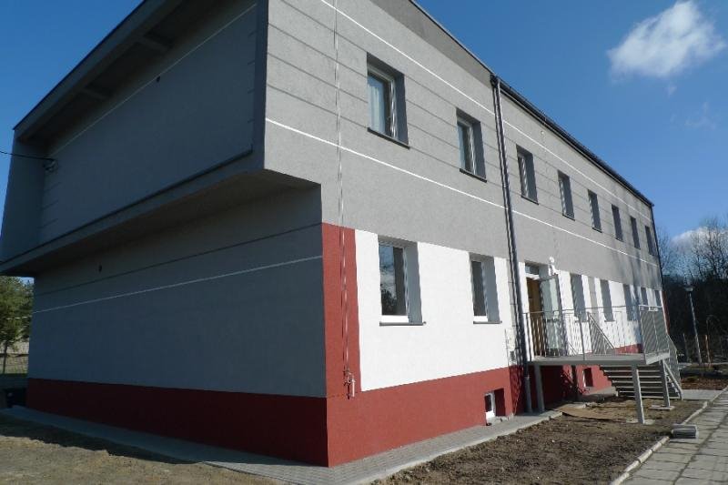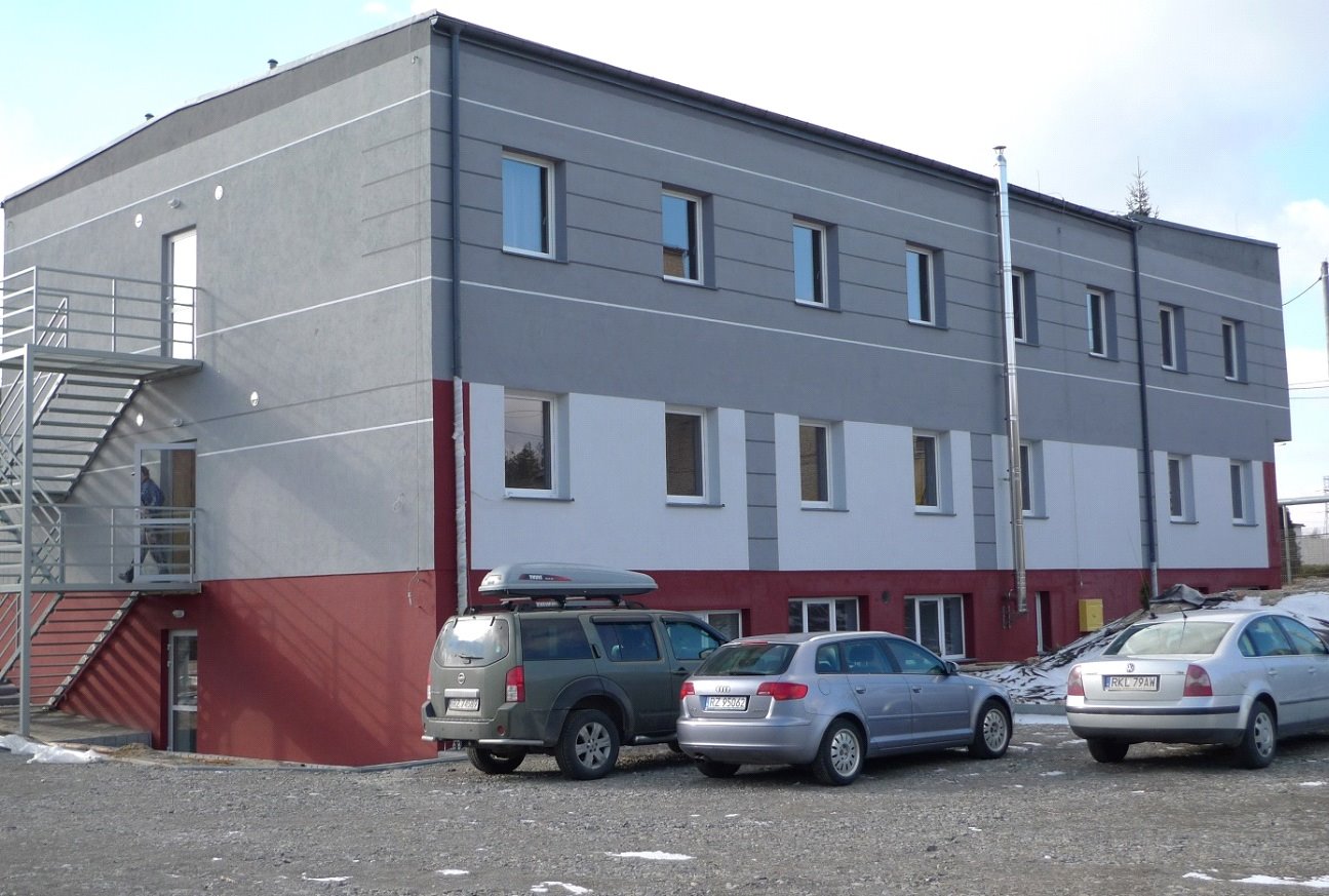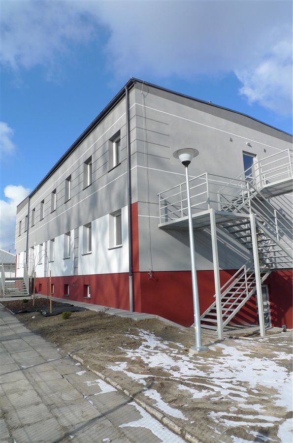 3.Piętro budynku składa się z 15 pokoi z łazienkami.(pokoje ok 14 m2). Każdy z pokoi wyposażony jest w dwa tapczany, instalację TV, łazienkę (kabina prysznicowa, umywalka, WC, grzejnik drabinkowy). Piętra łączy klatka schodowa wewnętrzna oraz zewnętrzna wykonana z metalu. Podłącza wody i kanalizacja oraz prądu są zasilane z pobliskiego zakładu SOLBET i rozliczane FV co miesiąc z w/w zakładem. Dojazd do budynku drogą zakładową na podstawie umowy użyczenia (bezpłatny). Budynek remontowany 6 lat temu (remont generalny) ocieplanie fundamentów, izolacja termiczna 10 cm, wymiana okien PCV, wymiana wod-kan, wymiana elektryki, nowe ścianki działowe, tynkowanie, poszycie dachu, nowe wykończenie płytki, malowanie, wewnętrzna stolarka aluminiowa. Budynek murowany pustak ,stropy żelbetowe, ścianki działowe pustak Solbet, komin obsługujący piec do centralnego ogrzewania z chromoniklu po elewacji zewnętrznej budynku.