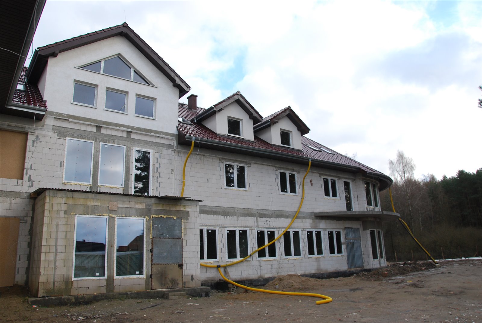 W okolicy Szczecina 12 km od centrum w sąsiedztwie Puszczy Wkrzańskiej i Lasu Arkońskiego powstaje nowoczesny Rodzinny dom opieki i rehabilitacji dla ludzi w podeszłym wieku, którego jesteśmy właścicielami. Obecnie budynek jest w stanie deweloperskim. Obiekt położony w pięknej dzielnicy Szczecina, powierzchnia działki na której znajduję się obiekt to 6 tys. m2. Budynek w kształcie litery „Z” z dwoma klatkami schodowymi oraz windą. Powierzchnia użytkowa obiektu 2200 m2. Na parterze znajdować się będzie: kuchnia, stołówka, sala rekreacyjna, sala kominkowa, kawiarnia, sala gimnastyczna, gabinet odnowy biologicznej, gabinety lekarskie, gabinet rehabilitacji, fizjoterapia i hydroterapia. Pierwsze piętro to część mieszkalna dla łącznie 45 osób apartamenty z aneksami kuchennymi o powierzchni 40m2 , pokoje jednoosobowe o powierzchni 20m2 i pokoje dwuosobowych o powierzchni 26m2. Wszystkie pokoje wyposażone są w łazienki, które mogą być przystosowane dla osób niepełnosprawnych. Każdy pokój będzie posiadał system przywoławczy, telewizje. Istnieje możliwość wyposażenia pokoju, apartamentu na życzenie. Ponadto na piętrze znajdować się będzie sala kąpielowa. Na poddaszu przewidziany jest salon fryzjerski i kosmetyczny, sale terapii zajęciowej, biblioteka, mieszkanie właścicieli. Nie wykluczone są dodatkowe apartamenty. Wartość nieruchomości w obecnym stanie wynosi według operatu szacunkowego 7.500.000 zł.