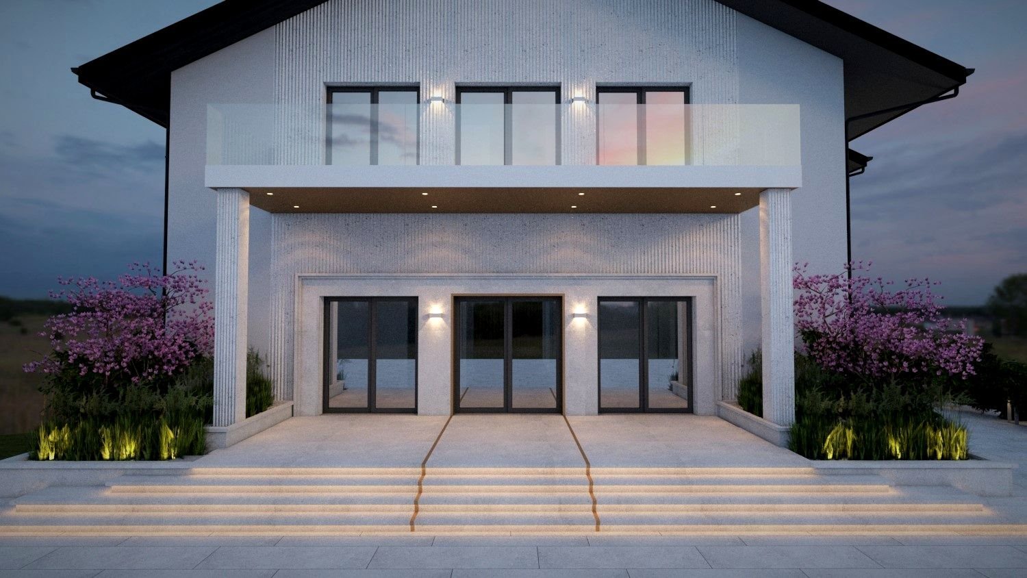 Po stronie Kupującego zostają balustrady zewnętrzne na tarasach.