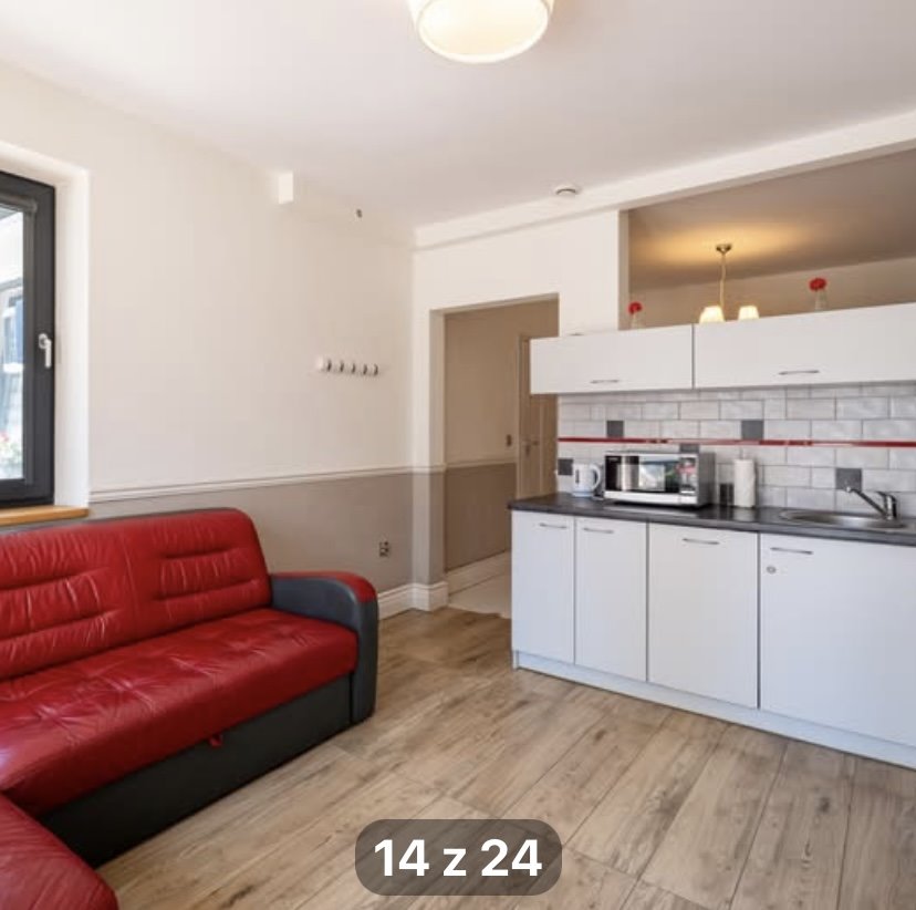 - to 3 niezależne apartamenty O POW. 30 m2, każdy z oddzielnym wejściem, składające się z sypialni, salonu z aneksem kuchennym oraz łazienki z WC.