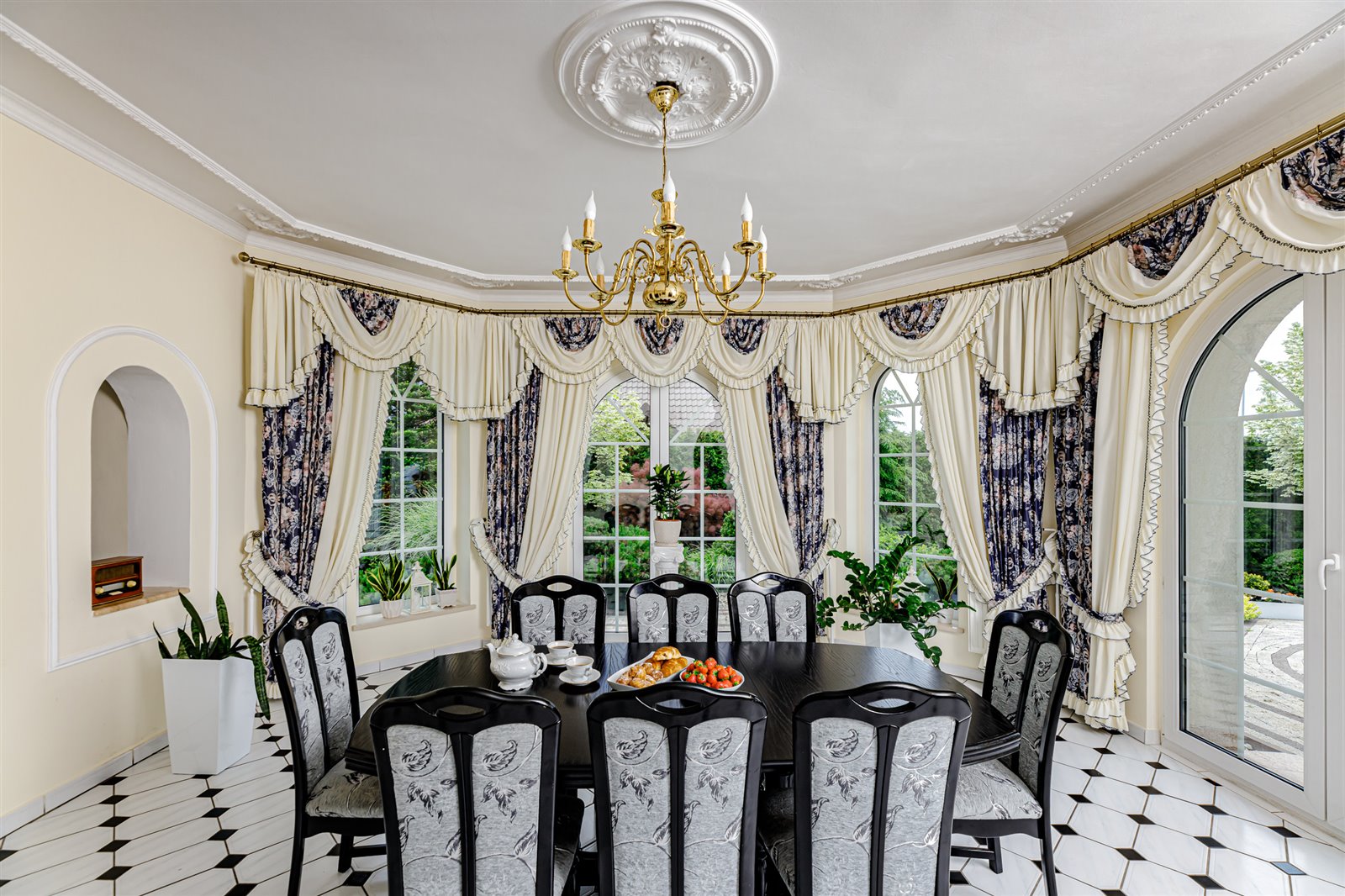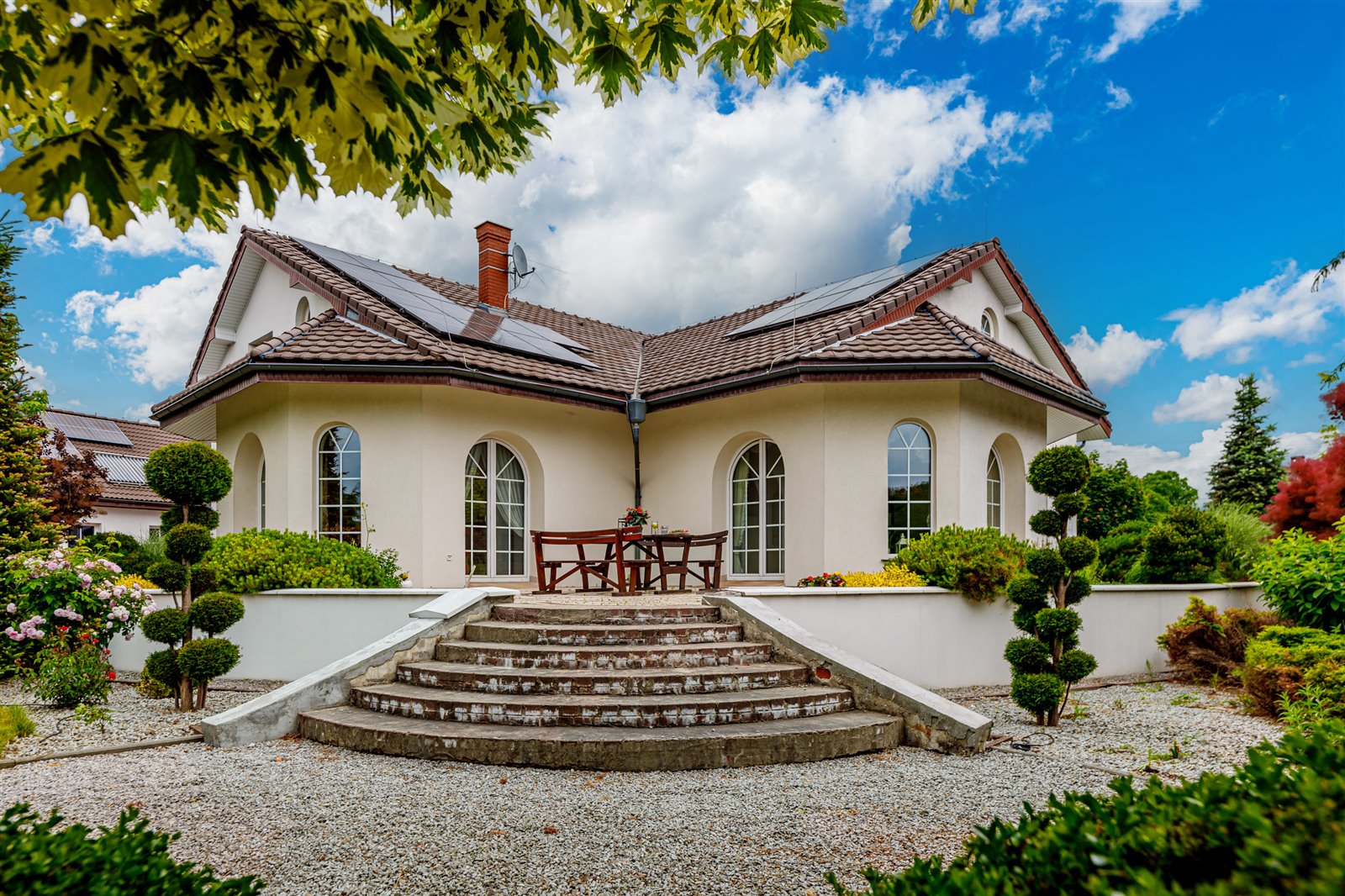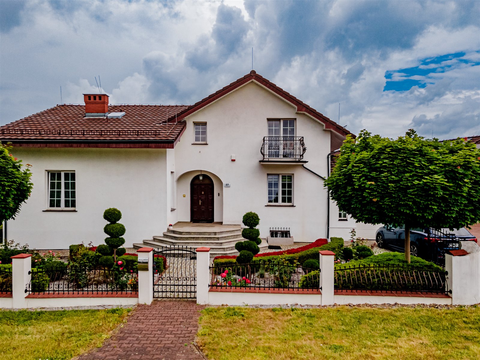 Na przepiękny różany ogród prowadzi wyjście zarówno z salonu jak i jadalni.