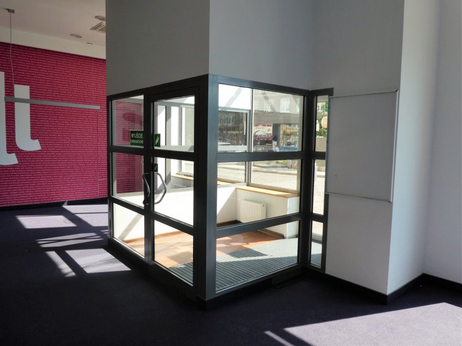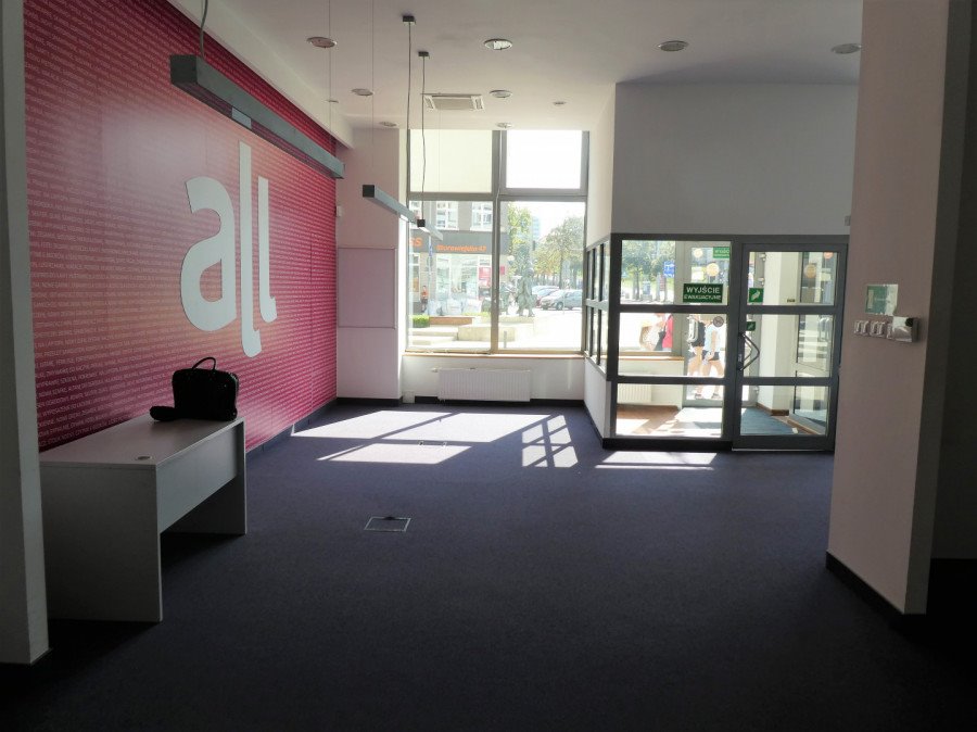 Składa się z 3 pomieszczeń z czego jedno duże (open space). Do tego pomieszczenia socjalne, łazienka z WC. Lokal posiada klimatyzację oraz alarm. Zdecydowanym atutem jest przeszklona witryna oraz to, że lokal jest przystosowany do wymagań bankowych - wcześniej mieścił się tutaj jeden z oddziałów. Czynsz wynosi 6000zł netto + rachunki. Wymagana jest kaucja w wysokości jednomiesięcznego czynszu.
