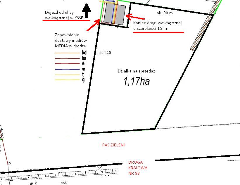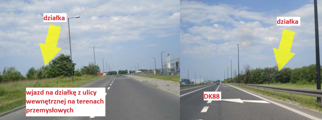 Działka przylegająca bezpośrednio do DK 88, bardzo dobrze wyeksponowana.