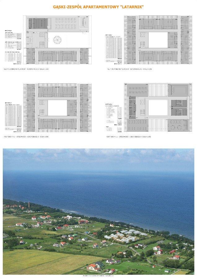 - budynek hotelowy: 52 apartamentów (20 apartamentów 2-pokojowych o pow. 48,65 m2, 28 apartamentów 1-pokojowych o pow. 31,65 m2 oraz 4 apartamenty 1-pokojowe o pow. 36,65 m2).