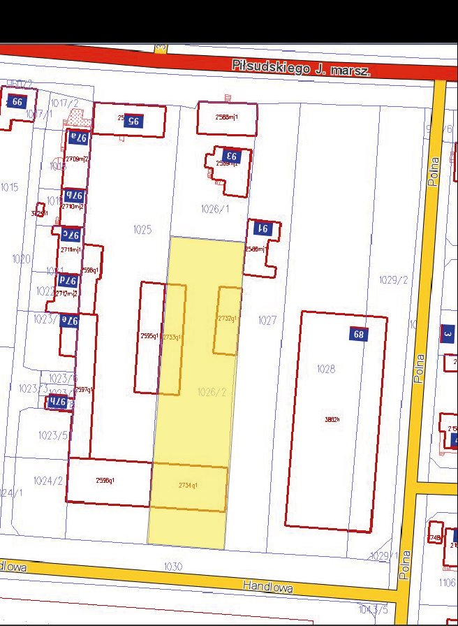 Działka posiada ogromny potencjał usługowy zważywszy na bezpośrednie sąsiedztwo z targowiskiem miejskim.