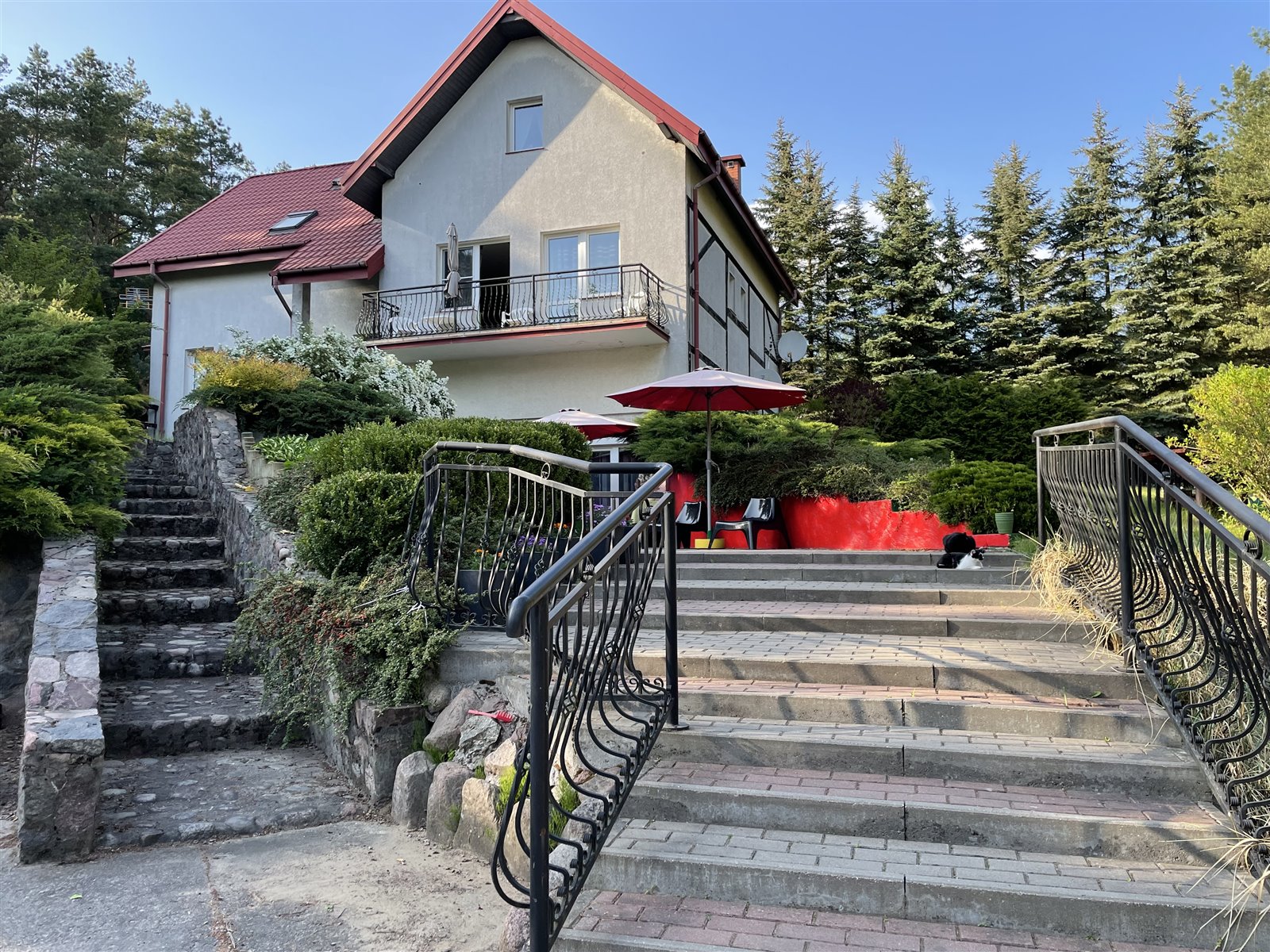Budynek o powierzchni 347 m2 podzielony jest na 2 części: prywatną i gościnną. Na posesji jest parking strzeżony na kilkanaście samochodów. Budynek został oddany do użytkowania w 2003 roku. Wykonany został z pustaka, pokryty dachem z blachodachówki. Ocieplenie na 10 cm. Kanalizacja w postaci szamba 20 m3. Stan nieruchomości w zależności od potrzeb nowego właściciela: do remontu lub odświeżenia.