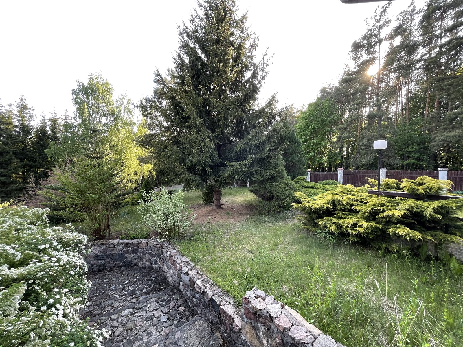 Posadowiona jest na 1777-metrowej działce, na niewielkim wzniesieniu. Teren jest ogrodzony i zadbany, pełen zieleni, bogato obsadzony roślinami, krzewami i dorodnymi drzewami.