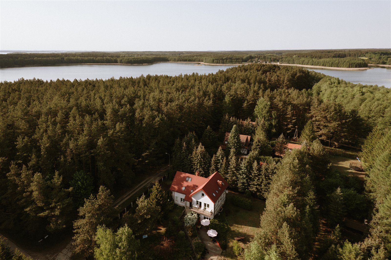Wielkim atutem nieruchomości jest jej położenie w cichej, spokojnej okolicy, bez tłumów turystów i wakacyjnego rozgardiaszu. W sąsiedztwie nie ma innego, tego typu obiektu, jedynie kilka domków działkowych i gospodarstw.