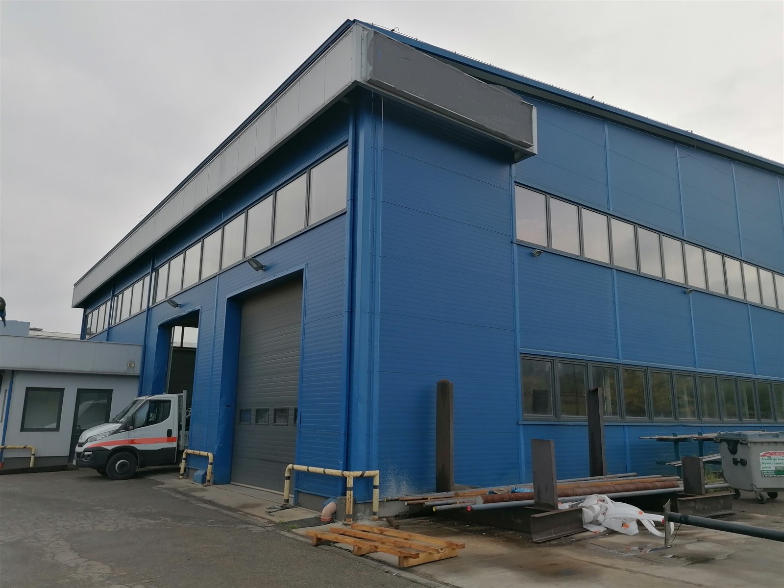 2 hala podzielona na usługi cięcia plazmą z zapleczem magazynowym + druga część na urządzenia.