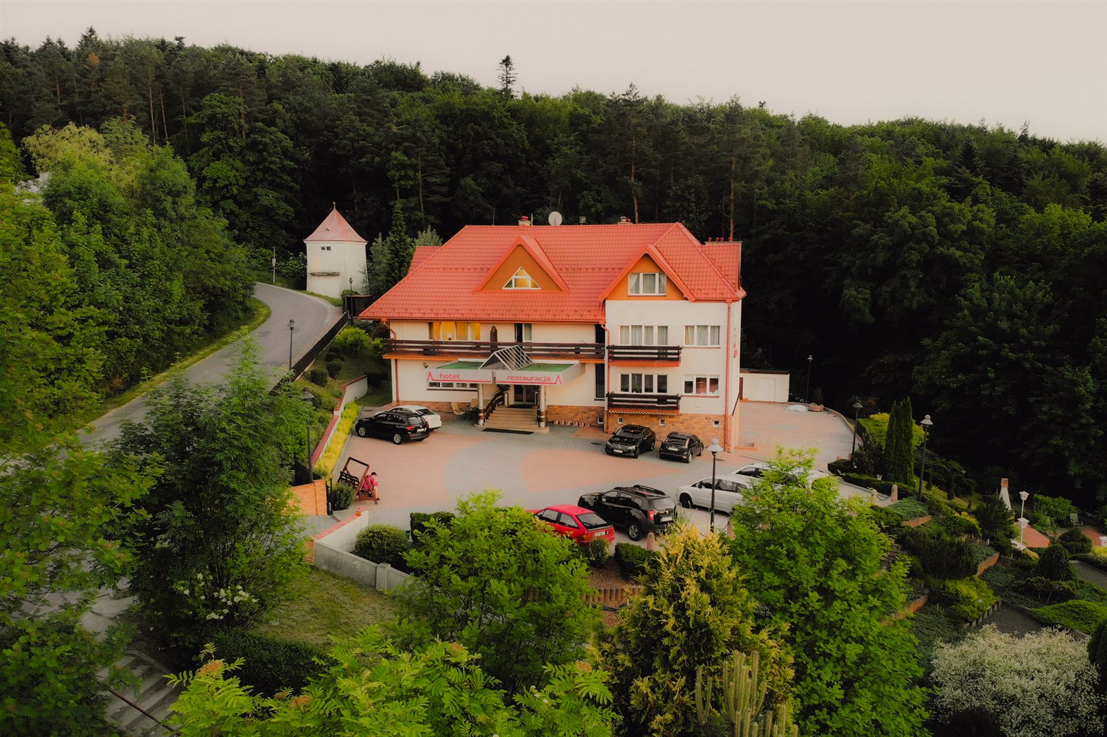 Oprócz ww. hotelu w cenie jest budynek byłej stacji transformatorowej o powierzchni użytkowej 32,0 m2, pełniący funkcję gospodarczo – magazynową. Położony przy drodze na gruncie przylegającym do przedmiotowej nieruchomości stanowi środek trwały na obcym gruncie.