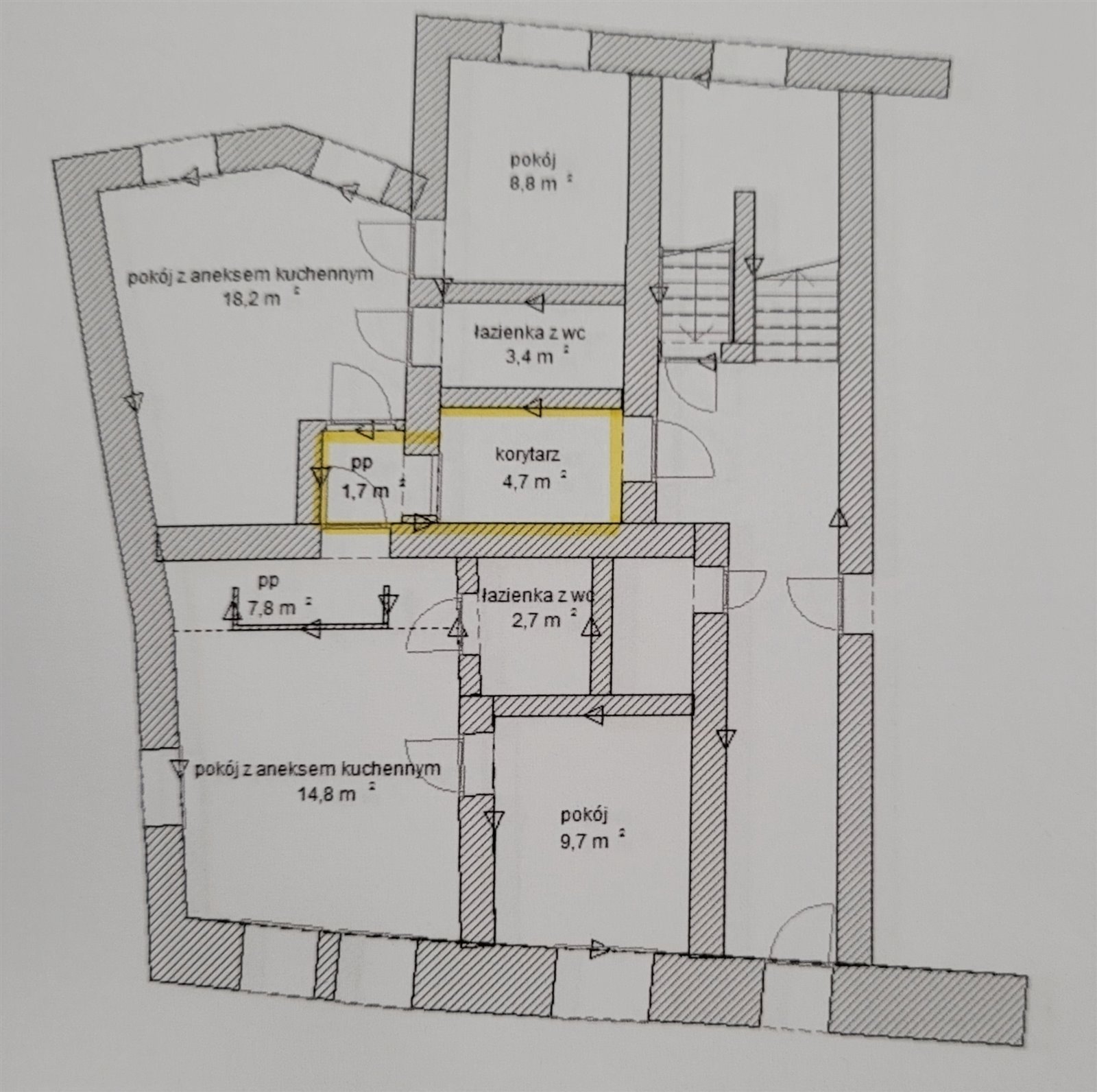 Mieszkania zostały podzielone z jednej nieruchomości o powierzchni 75m2. Każde z mieszkań ma po 35m2, mają też wspólny korytarz o powierzchni 5m2. Mieszkania są niezależne, mają osobne Księgi Wieczyste.