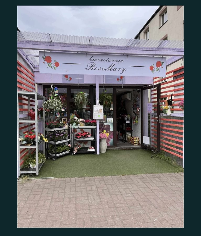 Udogodnienia: klimatyzacja, toaleta, system alarmowy, system monitorujący. Budynek posiada wiatę gdzie można wystawiać rośliny i inne ekspozycje. Dobrze skomunikowane miejsce przy głównej ulicy. Duża baza stałych i zadowolonych klientów.