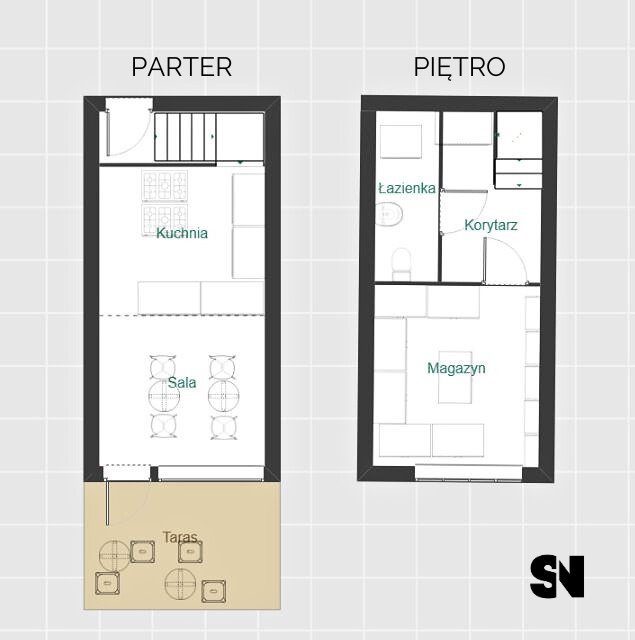 Lokal o powierzchni 42 m², składający się z parteru (główna sala) i pierwszego piętra (część magazynowa/użytkowa), jest w pełni wyposażony i gotowy do działania. Znajdziesz w nim między innymi: