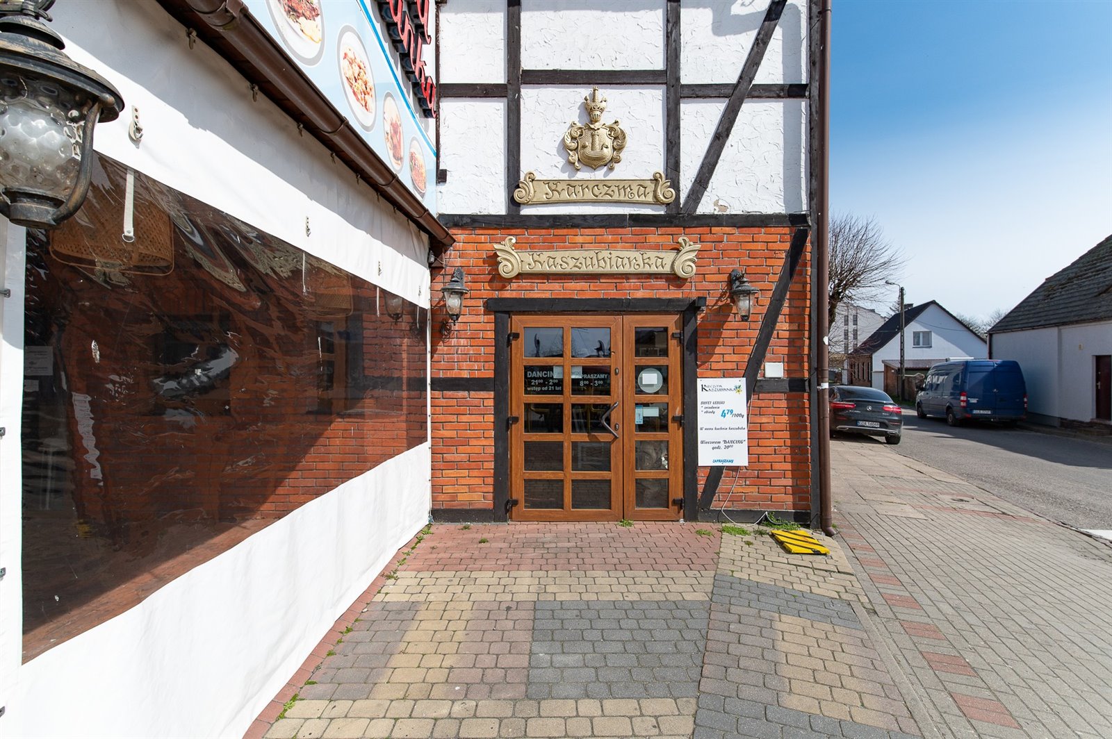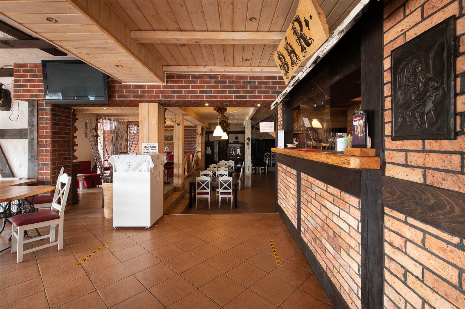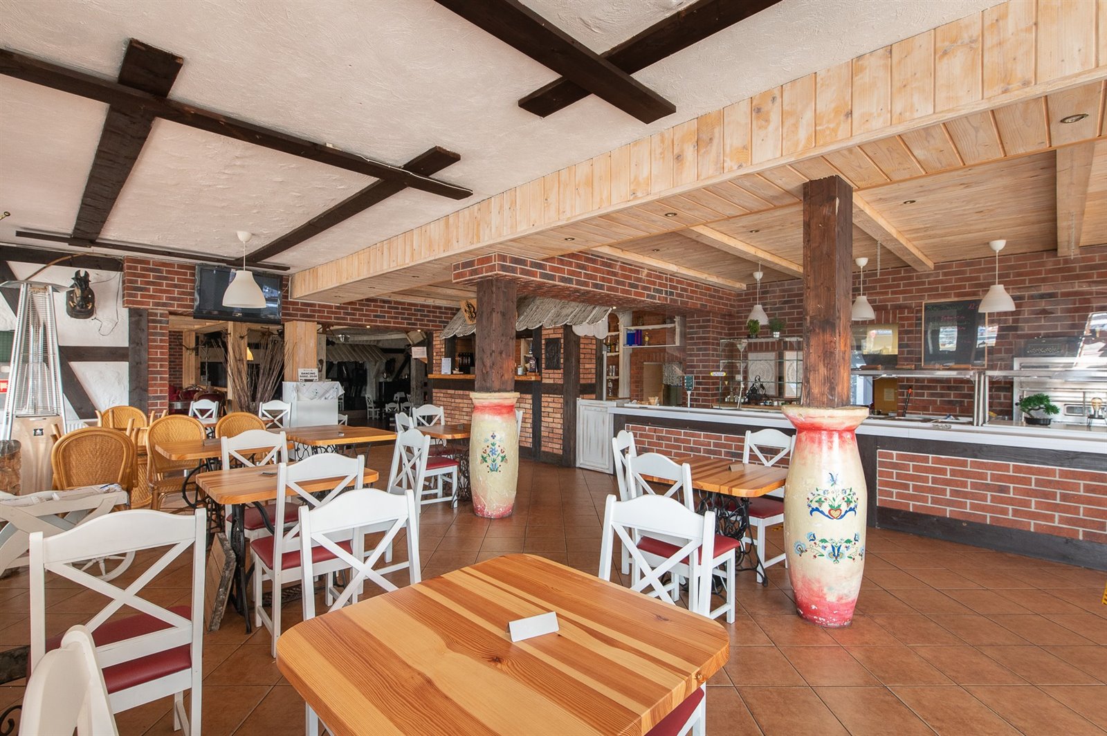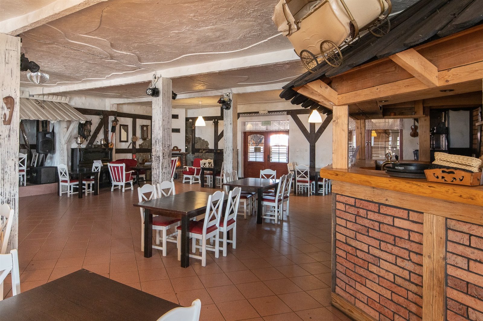 Na parterze znajduje się restauracja z całym wyposażeniem gastronomicznym i pomieszczeniami przynależnymi z zachowanym reżimem sanitarnym, jak również bar wraz z umeblowaniem, sala kominkowa, sala dancingowa ze sceną, toalety dla gości, a także bar zewnętrzny z zadaszeniem i miejscem na grilla oraz od strony głównej ulicy - patio z zadaszeniem. Ponadto, na dolnym poziomie w skład pomieszczeń wchodzi: biuro, mieszkanie i pokoje np. dla personelu.