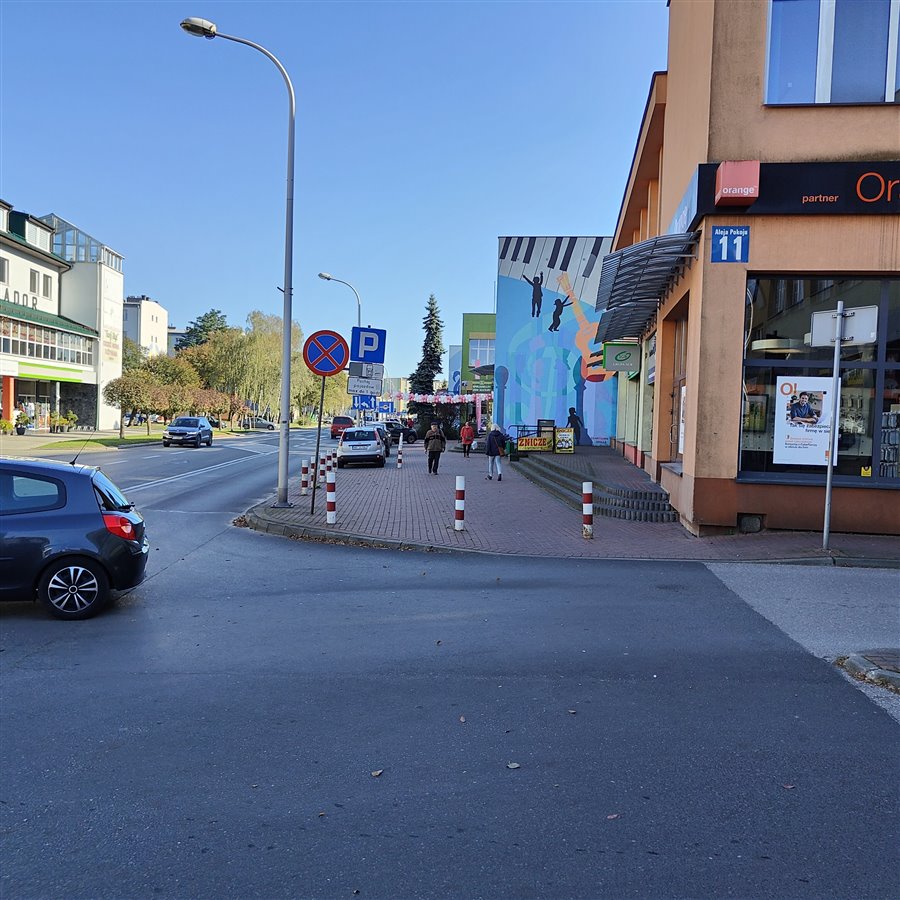 Lokal posiada dwa wejścia – wejście główne – od strony ulicy Aleja Pokoju 15 oraz wejście na tyłach budynku (mogące pełnić funkcję dostaw towaru). Także na tyłach budynku znajduje się przypisane do użytkowania miejsce parkingowe.