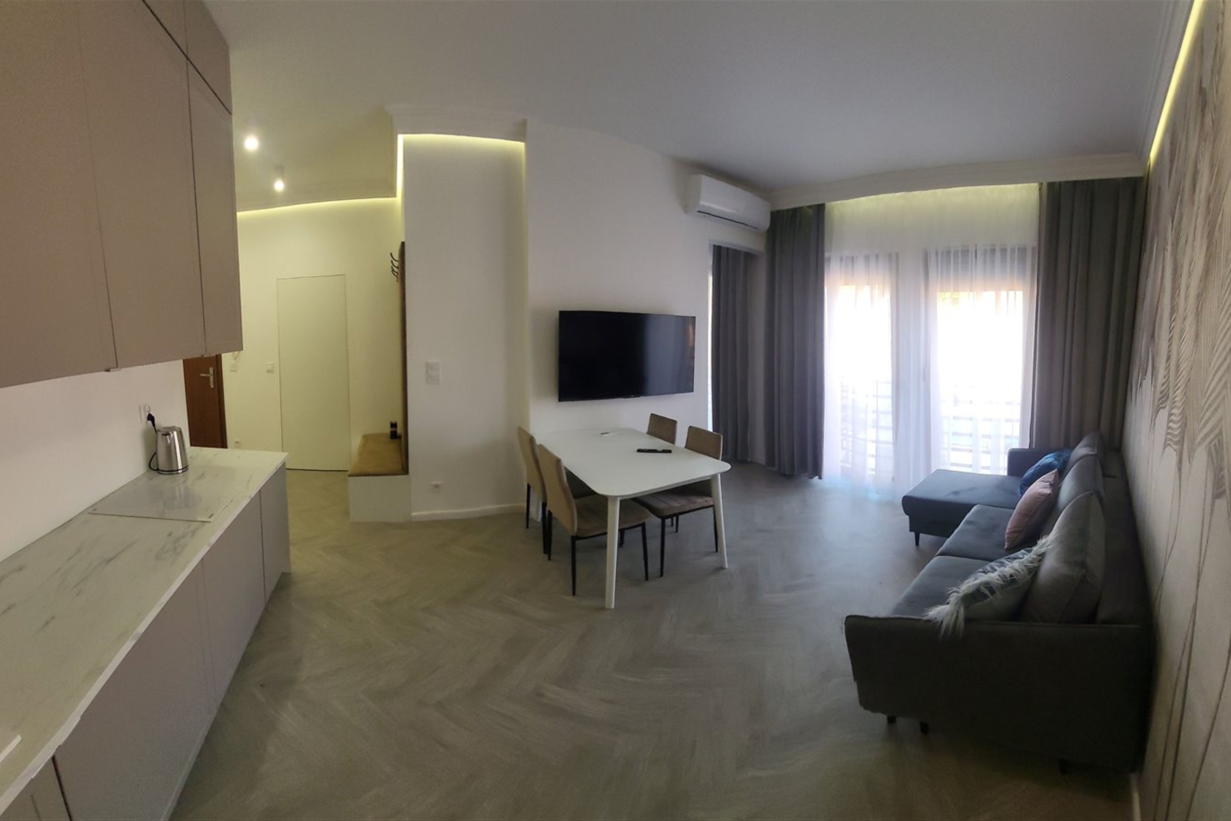 Apartament posiada wyznaczone miejsce parkingowe wliczone w cenę. Kuchnia w pełni wyposażona w nowe sprzęty AGD. Apartament wykończony bardzo wysokiej jakości materiałami. Ogrzewanie gazowe (podłogowe), klimatyzacja.