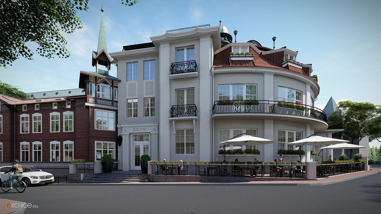Projekt przygotowany z niebywałą starannością, obejmujący renowację historycznego budynku z 1870, roku pełniącego kiedyś funkcję luksusowego hotelu "Seeblick", a później "Wojskowego domu wypoczynkowego Bałtyk". Dawniej obiekt nazywany "Perłą Bałtyku" był wizytówką miasta Międzyzdroje.