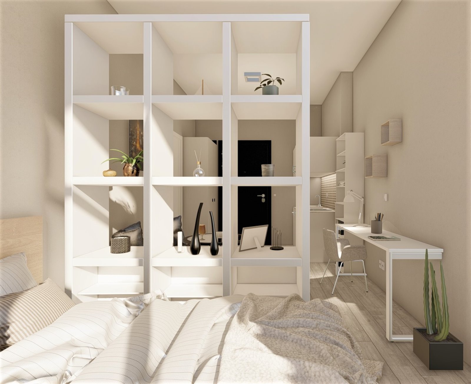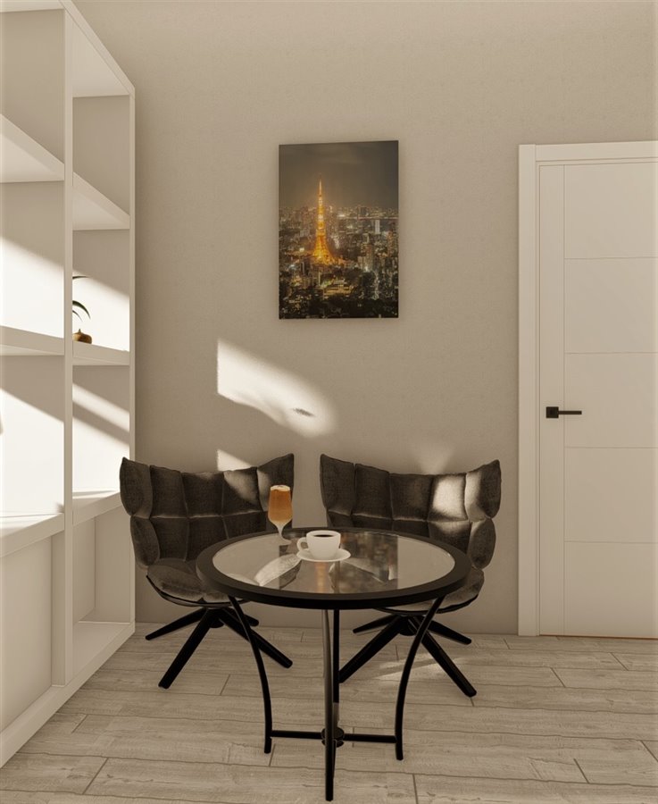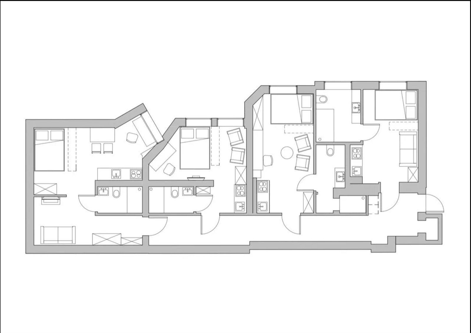 Mieszkanie liczy 113m2 i składa się z 4 jasnych oddzielnych pokoi. Każdy pokój ma swoją kuchnię oraz łazienkę.
