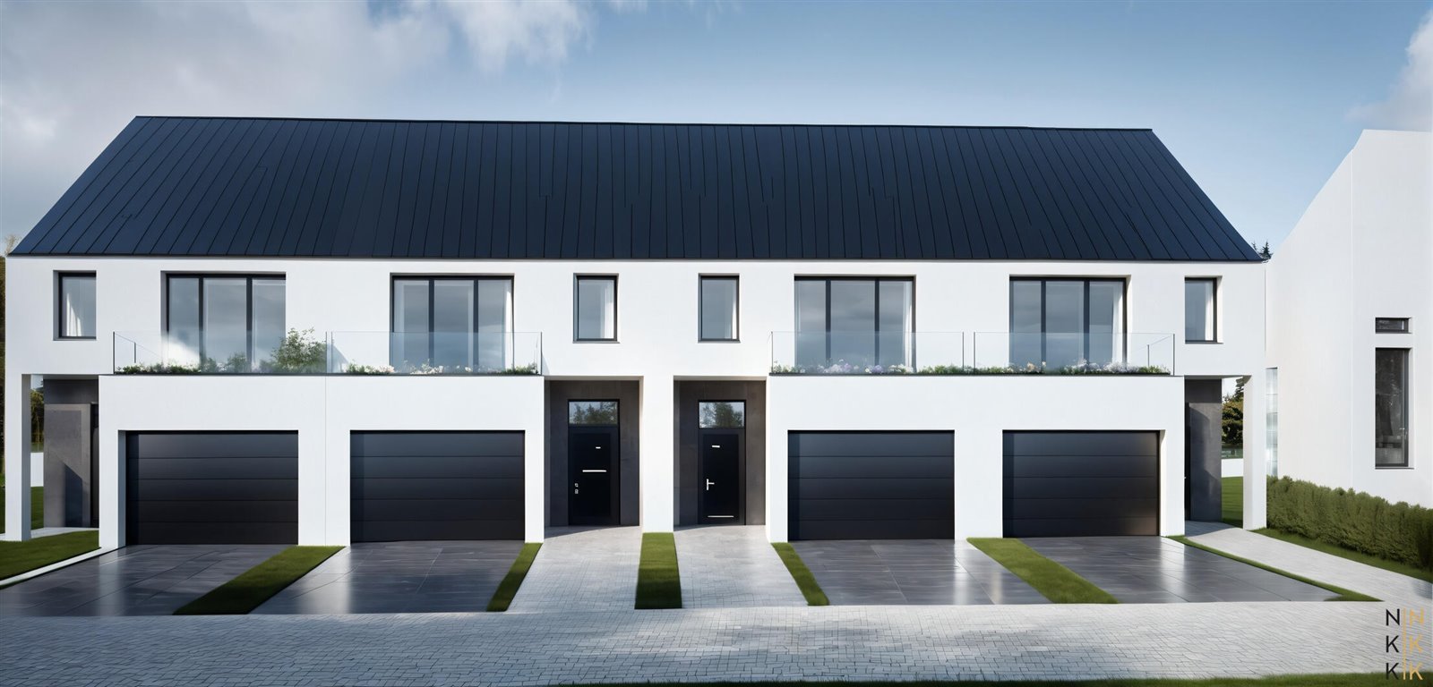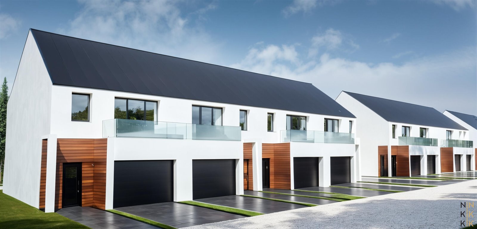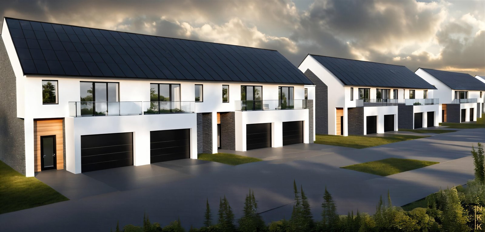 Każdy lokal został zaprojektowany jako dwukondygnacyjny o powierzchni około 120m2. Dla każdego lokalu przewidziano dwa miejsca parkingowe - jedno w garażu oraz jedno na podjeździe.
