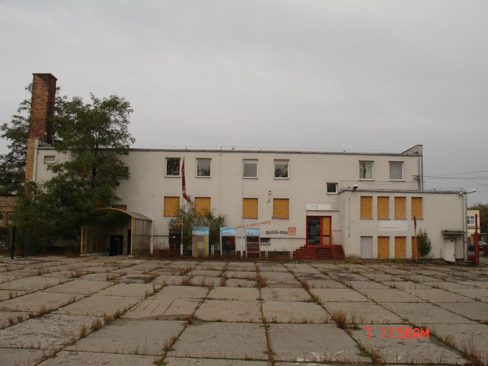 Budynek biurowy dwukondygnacyjny, podpiwniczony; w piwnicy znajdują się dwa pomieszczenia przeznaczone na kotłownię (dawniej węglową, obecnie obiekt podłączony do sieci ciepłowniczej – prawdopodobnie miejskiej) oraz pomieszczenia magazynowe. Na parterze i piętrze znajdują się pomieszczenia przeznaczone na biura, łazienka, wc damskie i męskie. Dodatkowo na parterze wydzielone miejsce na strefę handlową, salę sprzedaży. Budynek ocieplony, w roku 2008 przeprowadzono w nim remont, mający na celu poprawę funkcjonalności (wymiana stolarki okiennej, dobudowanie pomieszczenia portierni). Budynek wielkopłytowy OWT o grubości ścian konstrukcyjnych 19 i 14 cm. Jedna klatka schodowa – biegi prefabrykowane z okładziną lastrykową.