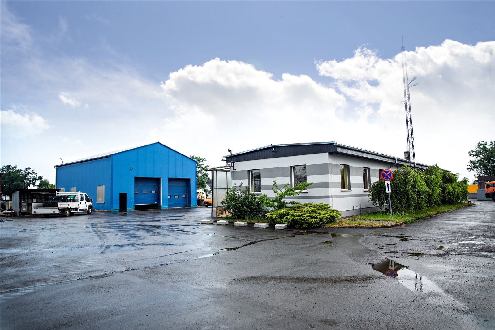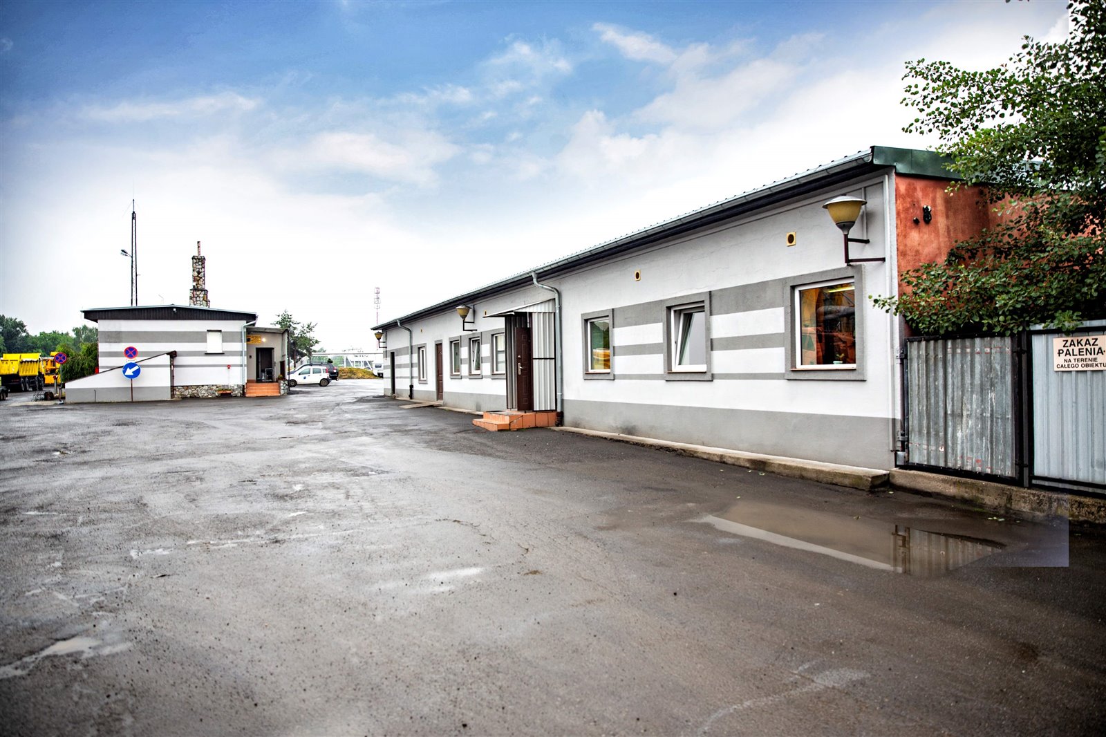 Powierzchnia działki 2,174m2, 2 budynki - biurowy i warsztatowo-socjalny o łącznej powierzchni 480m2, zabudowana wiata warsztatowa.