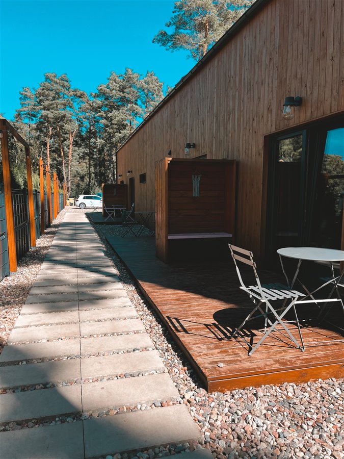 • Naturalne otoczenie: Obiekt znajduje się w przepięknym lesie sosnowym, na terenie NATURA 2000, co gwarantuje niezakłócony kontakt z naturą i ciszę.