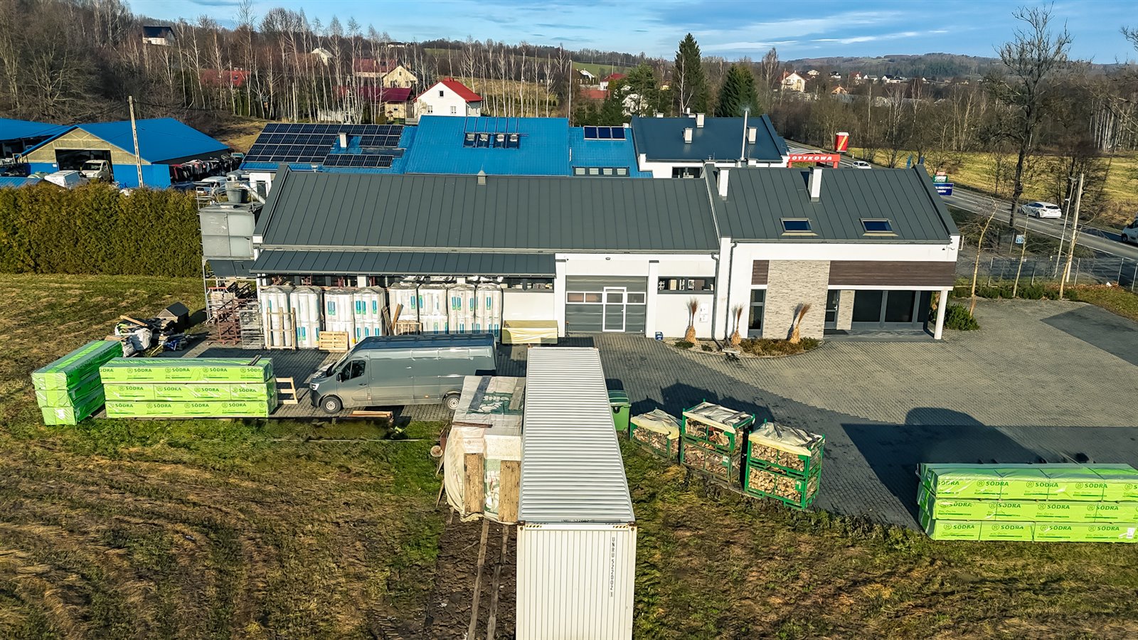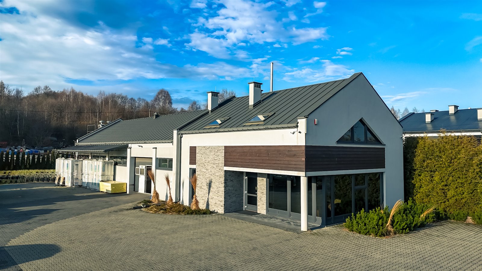 Nowoczesny budynek usługowo produkcyjny przy drodze wojewódzkiej w miejscowości Cieszyna w powiecie strzyżowskim