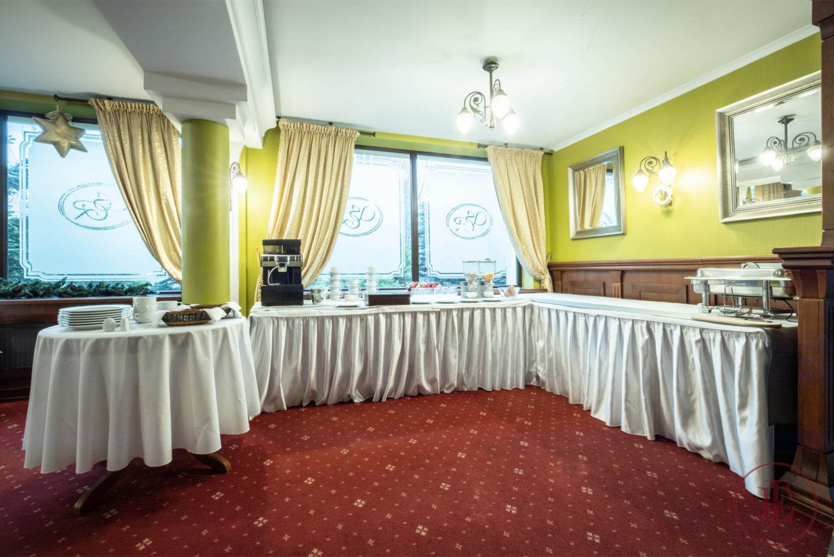 - Restauracja: około 100 m² (w pełni wyposażona w scenę, stoły z krzesłami)