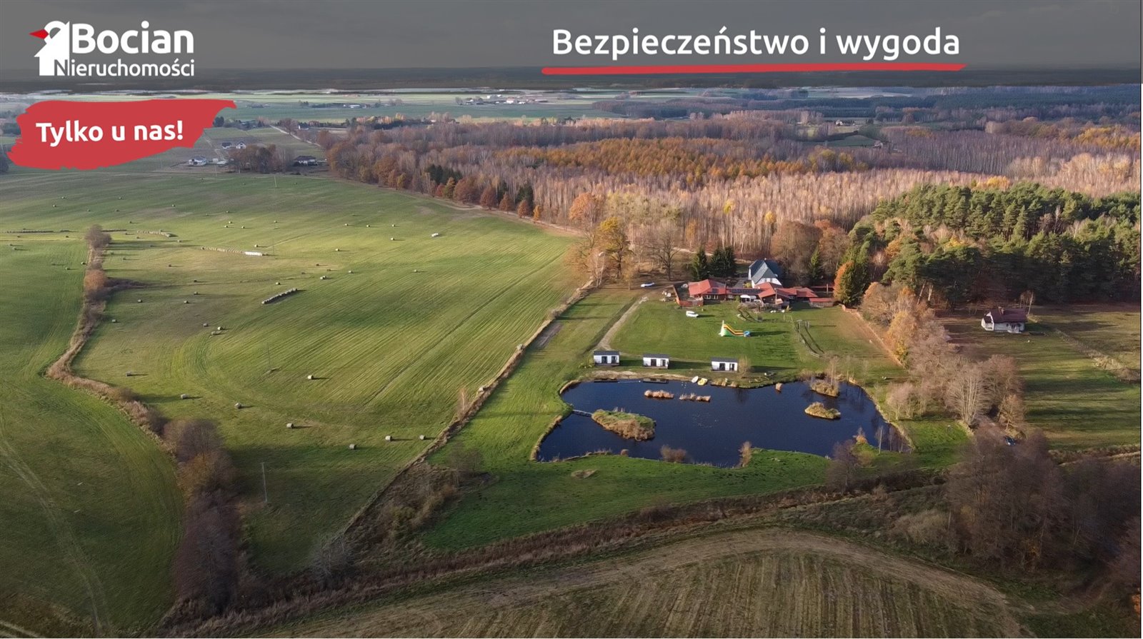 Nieruchomość znajduje się na działce o powierzchni 2,38 ha, na której znajdują się m.in.: