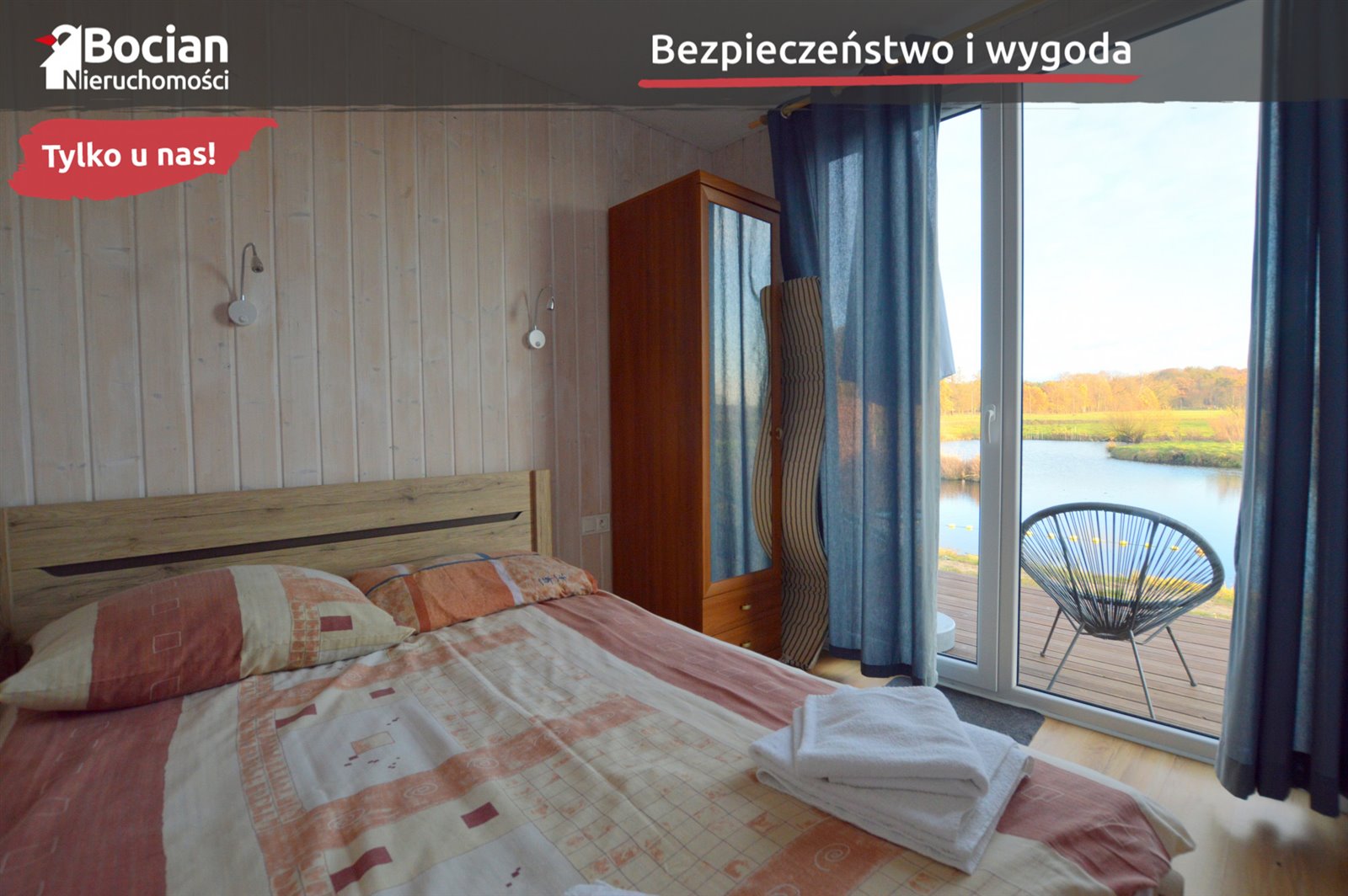 Trzy nowoczesne domki (24 m² każdy), z podziałem na część dzienną z aneksem kuchennym, sypialnię oraz łazienkę. Domki są klimatyzowane i ogrzewane, a każdy z nich ma taras oraz własne miejsce na ognisko.