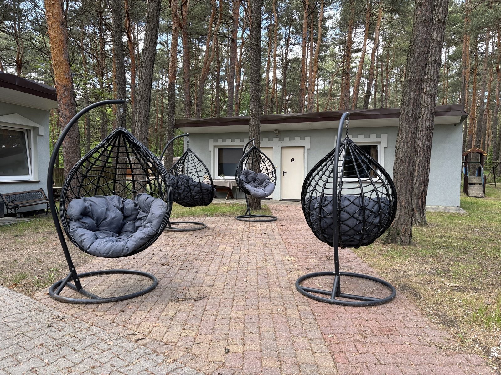 Domki ocieplone, wyposażone, z pełnym węzłem sanitarnym. Każdy domek posiada łazienkę oraz aneks kuchenny.