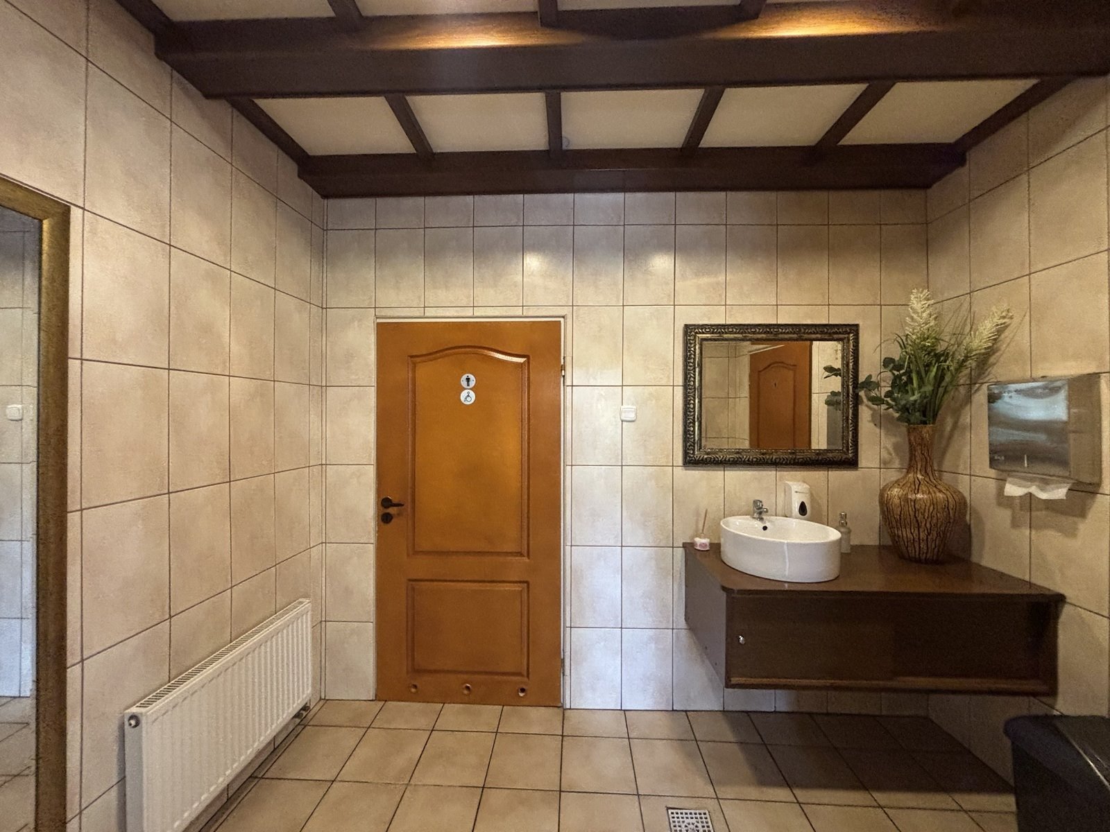 - pełne wyposażenie kuchni m.in. 2 profesjonalne kuchnie gazowe, duży okap z wyciągiem, osadnik tłuszczu, lodówki, chłodnia z regałami, patelnie, garnki, sztućce.