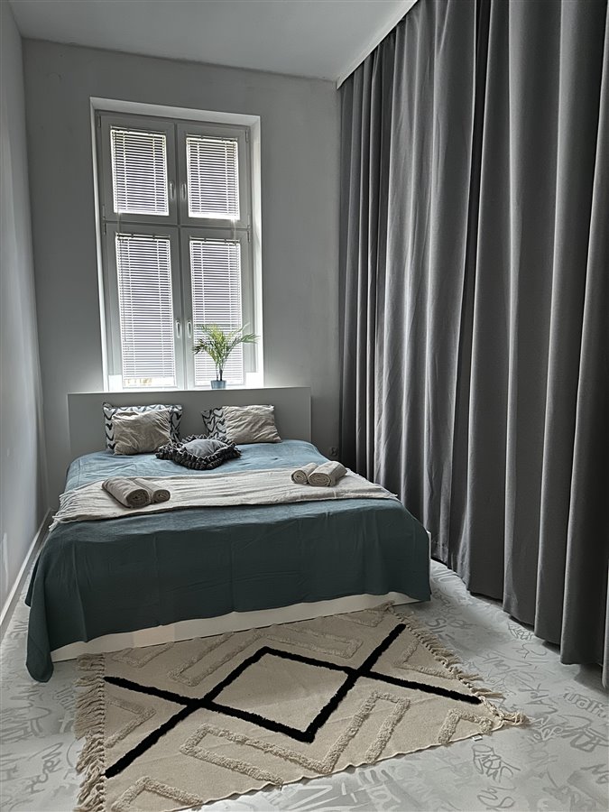 Mieszkanie składa się z trzech sypialni, salonu z aneksem kuchennym, łazienki z wanną i prysznicem oraz dużego holu z rozkładaną kanapą, co sprawia, że mieszkanie jest idealne dla turystów, podróżujących służbowo lub gości odwiedzających Łódź. Mieszkanie przystosowane jest dla max 10 osób, jest w pełni wyposażone i przygotowane do wynajmu od zaraz.