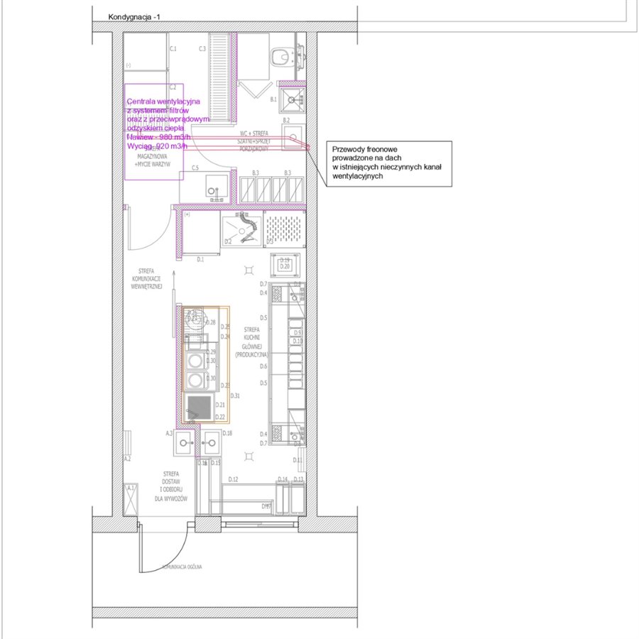 Lokal po generalnym remoncie w 2024 r. – nowe instalacje, klimatyzacja, wentylacja, podłogi, ściany, zabudowa gastronomiczna, urządzenia.