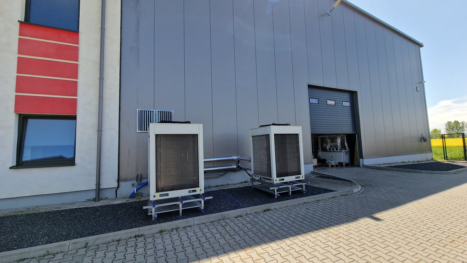 - budynek ogrzewany 2 pompami ciepła -- (kaskadowo).