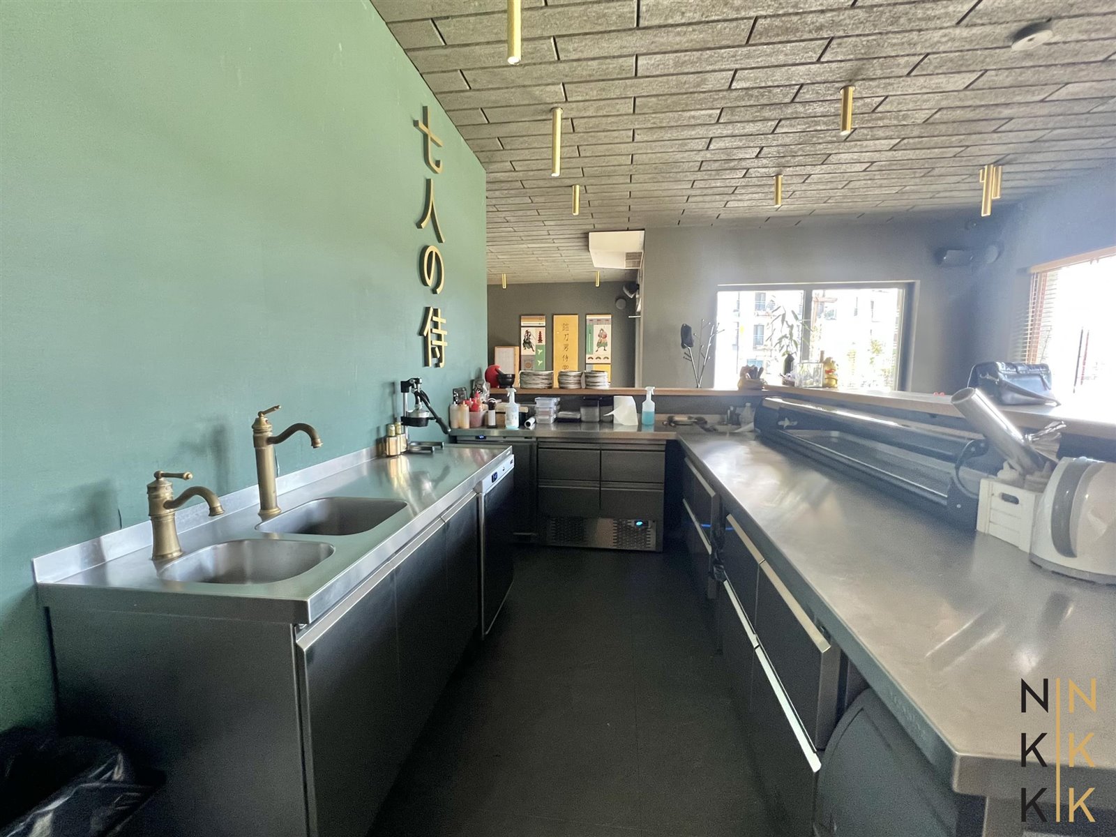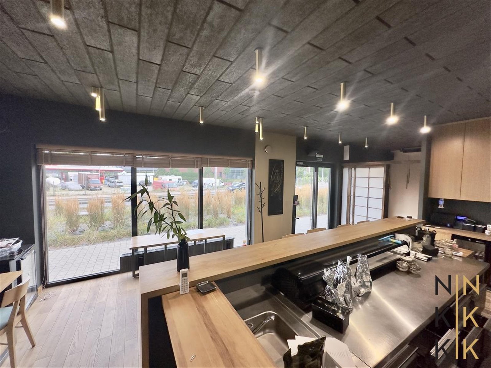Wnętrze zostało podzielone na 2 strefy - restauracji oraz kuchni. Część kuchenna została zorganizowana w dwóch obszarach otwartym (bezpośrednie przygotowanie posiłków przy barze) i zamkniętym (procesy przygotowawcze, magazyn).