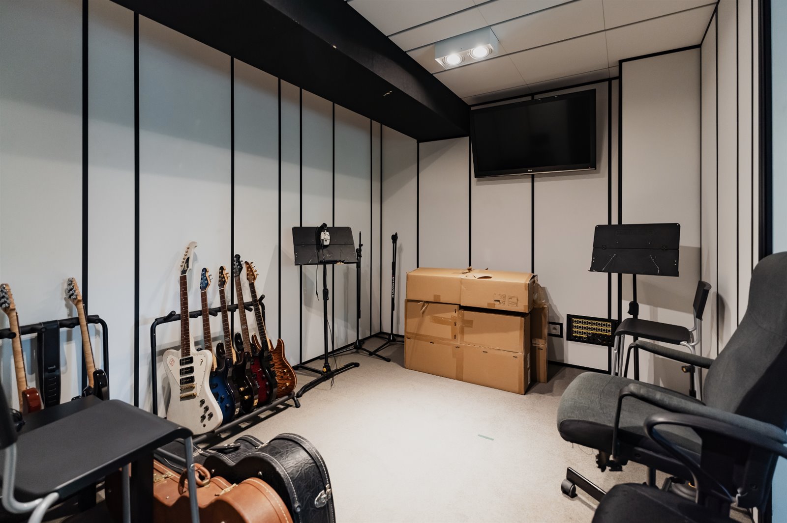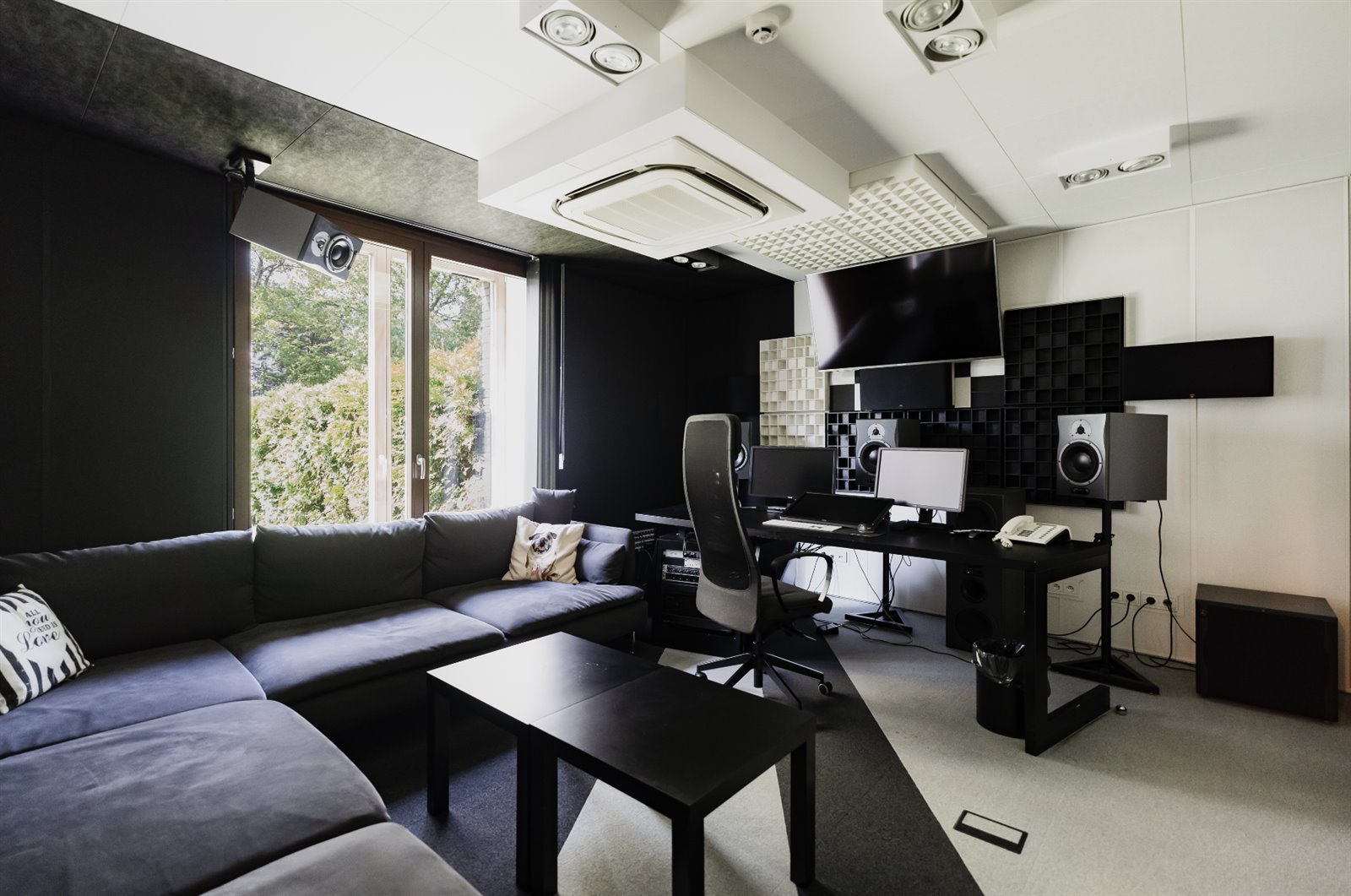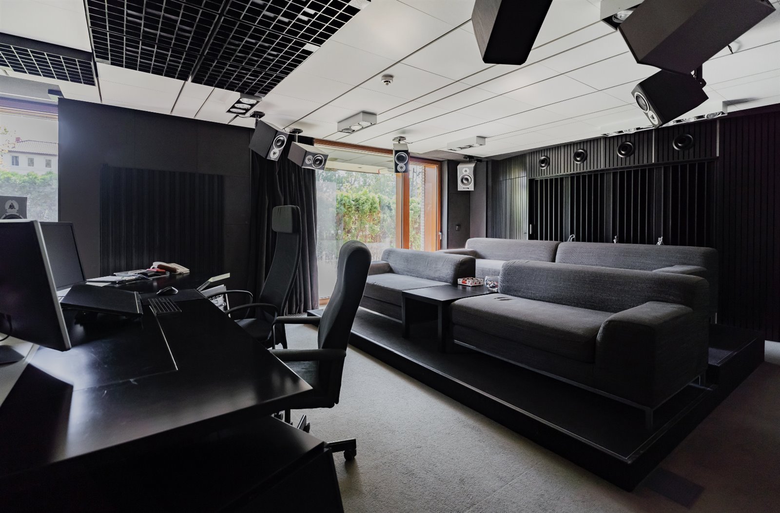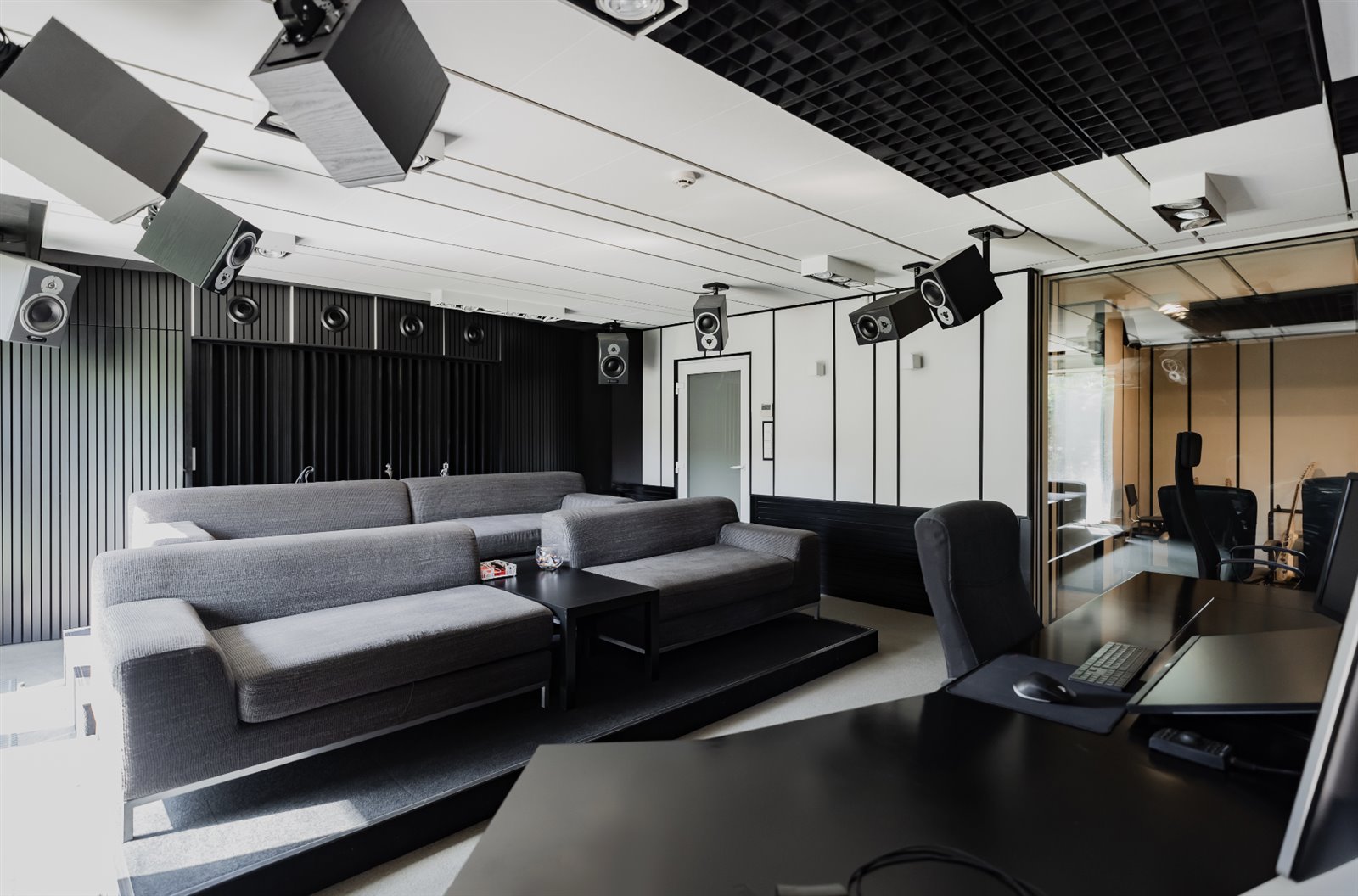 To 8 w pełni odizolowanych pomieszczeń realizatorskich wytłumionych najwyższej jakości materiałami akustycznymi, pośród których dominuje Ecophone.