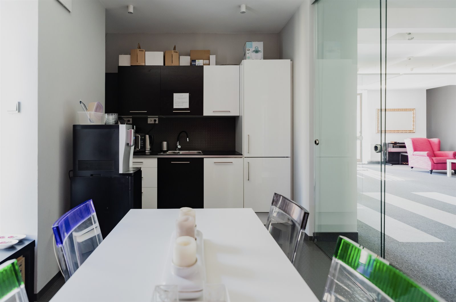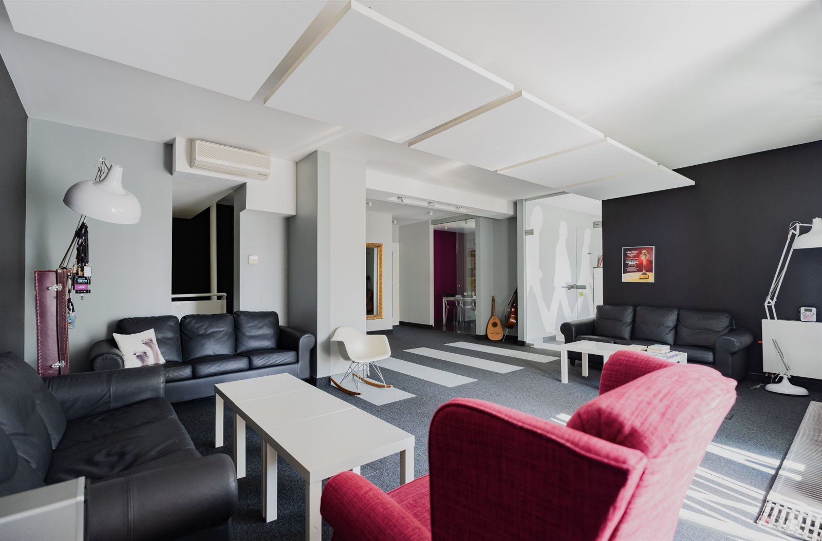 Kolorystyka utrzymana jest w modnym czarno-białym, monochromatycznym stylu, a pomieszczenia wyposażone są w szereg multi-funkcyjnych połączeń mających na celu zwiększenie możliwości ich konfiguracji, a co za tym idzie zwielokrotnienia wydajności. Przemyślana i starannie zaprojektowana sieć pozwala dowolnie dobierać zadaniowość pomieszczeń do aktualnie realizowanych projektów.