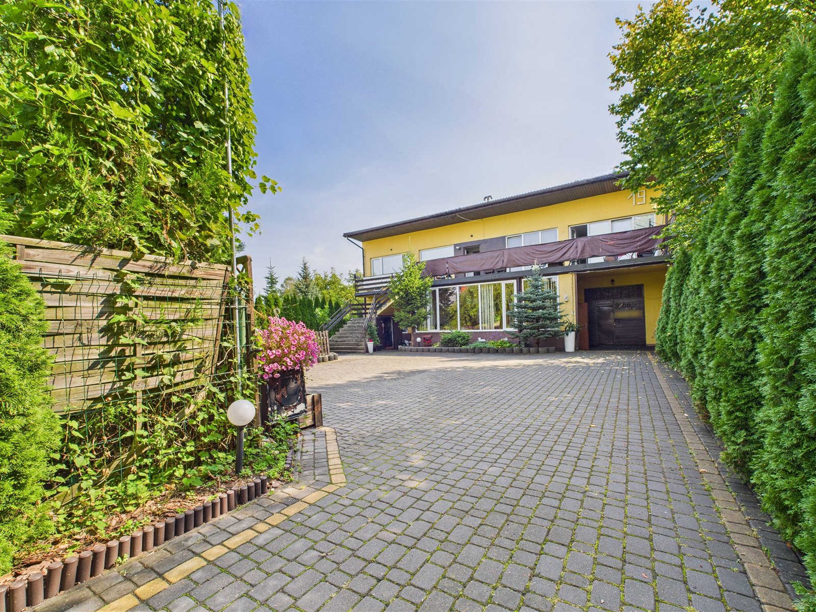 Dom o powierzchni użytkowej 299 m² posiada dodatkowo garaż 38 m², schowek 4 m², co daje łącznie ponad 351 m² powierzchni całkowitej, a także taras 49 m². Nieruchomość usytuowana jest na zadbanej działce o łącznej powierzchni 706 m², z dużym parkingiem wyłożonym kostką brukową.